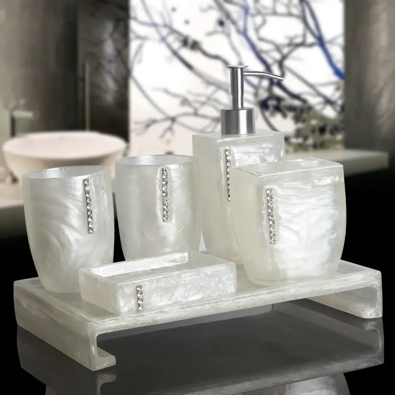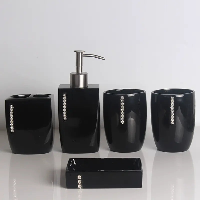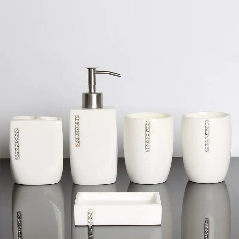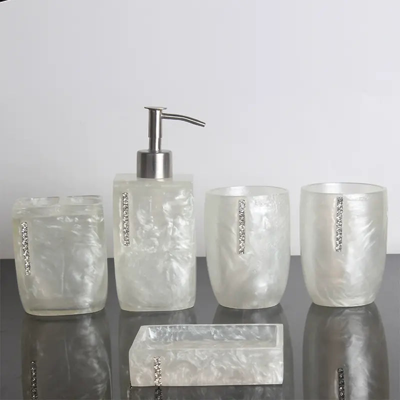 This five-piece set features a captivating design, showcasing intricate details that replicate the brilliance of diamonds. Each dispenser is accented with beautiful faux diamonds that not only enhance its aesthetic appeal but also add a touch of glamour to your space. The sophisticated look combined with practical functionality makes this dispenser perfect for any setting, whether it’s a luxurious bathroom or a cozy kitchen.