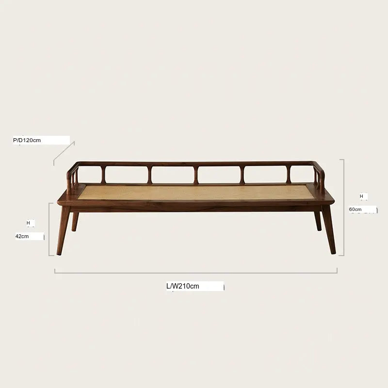 The structure of the FANJI Yatsumoto is constructed from solid American black walnut, known for its superior strength and breathtaking grain patterns. This wood is renowned for its resilience and natural beauty, ensuring that your sofa bed remains an impressive centerpiece for years to come. The bed board is made from plant rattan, offering a breathable sleeping surface that enhances comfort. Each piece of wood has been carefully selected and treated with the utmost care, emphasizing its natural grain and warmth.