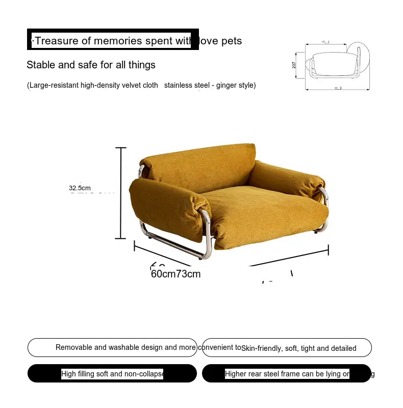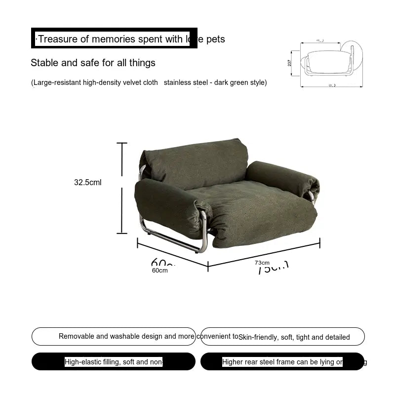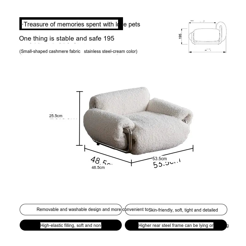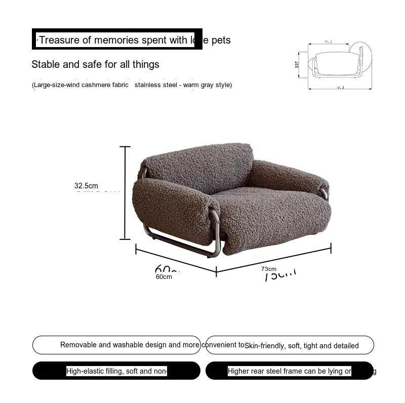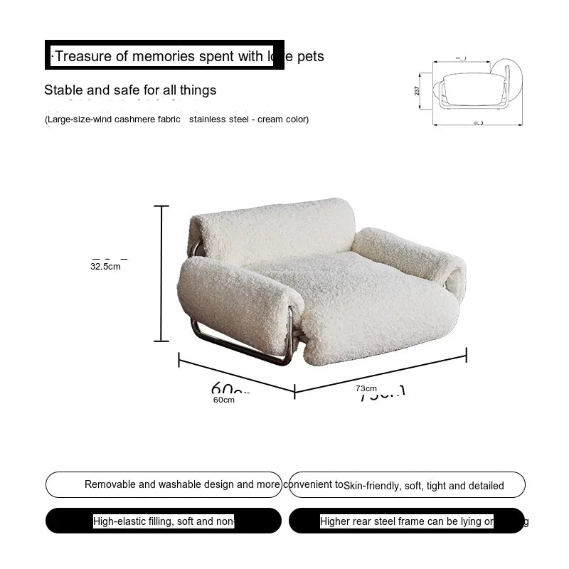 Two Size Options: The pet sofa comes in two sizes, large (73 x 60 x 32.5 cm) and small (53.5 x 48.5 x 25.5 cm), making it suitable for various breeds from small terriers to larger dogs—or even multiple cats!