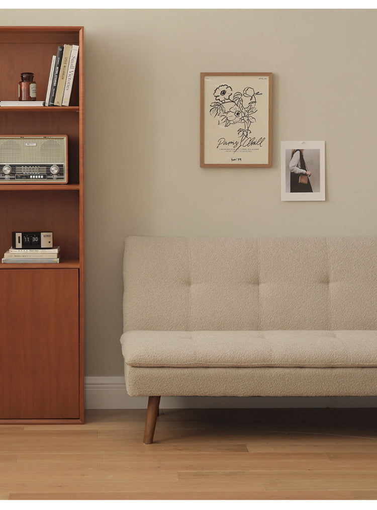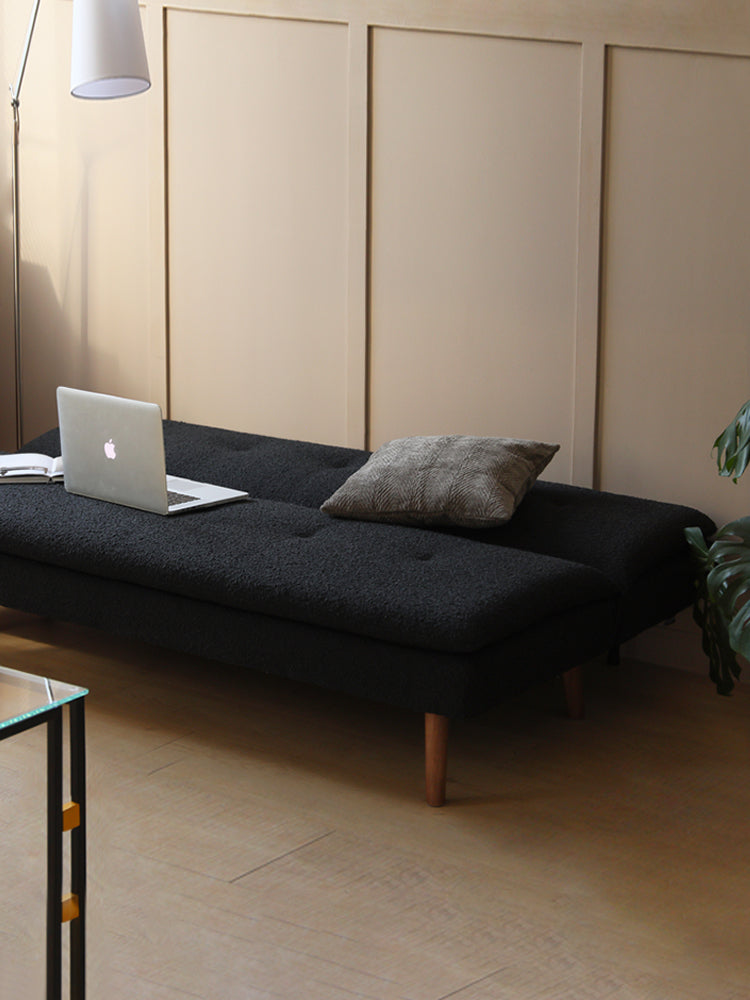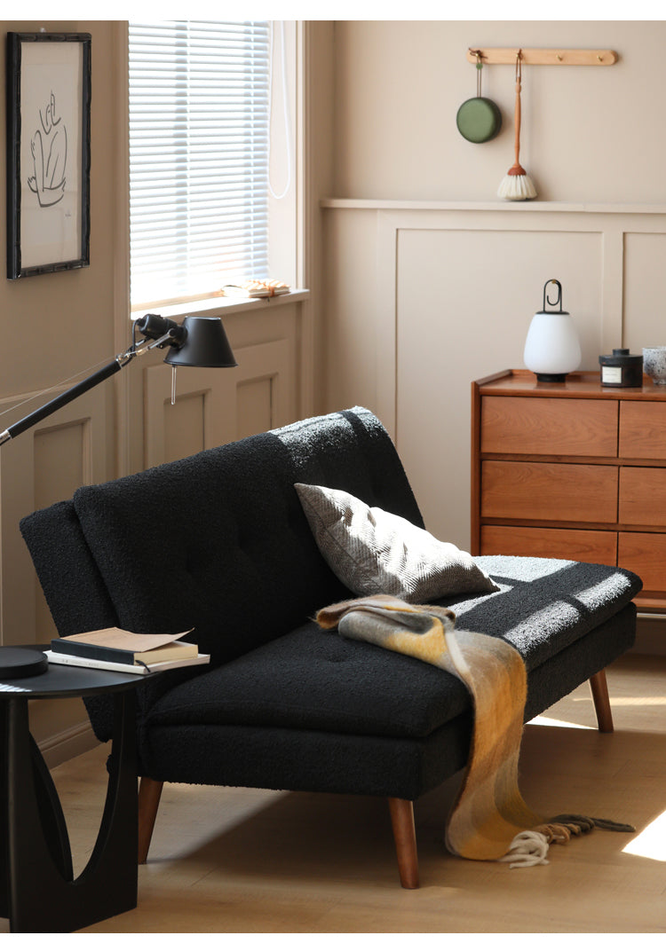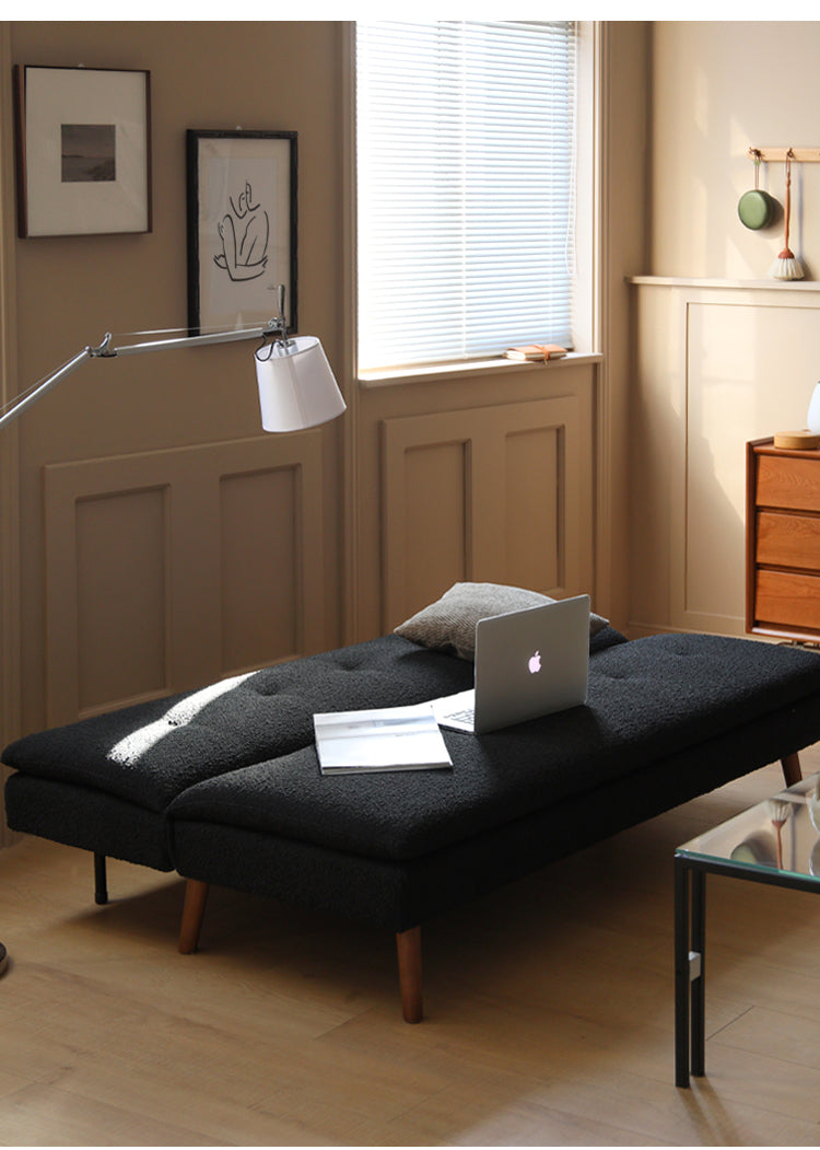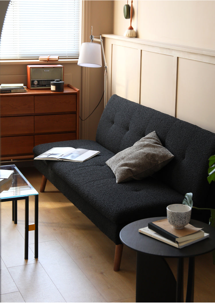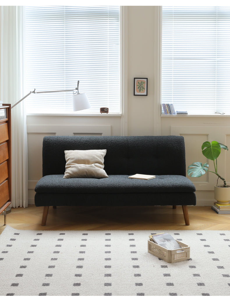 Life can be unpredictable, especially with pets and little ones roaming about. That's why the sofa is covered in plush imitation sheep wool fabric, designed to be soft and easy to clean, making it more resistant to stains and wear. This practical feature ensures that your sofa bed remains a stylish center of attraction in your home, even after years of use.