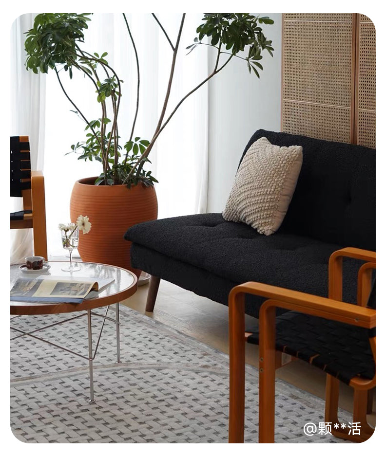 The HANKE Sapporo features a chic retro design that draws inspiration from natural elements and warm colors. With its soft lamb wool texture that adds an organic touch, it's reminiscent of a cozy, sunlit hillside where little black sheep baskIn the warmth. The sofa's rich oatmeal white and fudge colors not only make it versatile but also seamlessly integrate into various decors, from contemporary to classic.