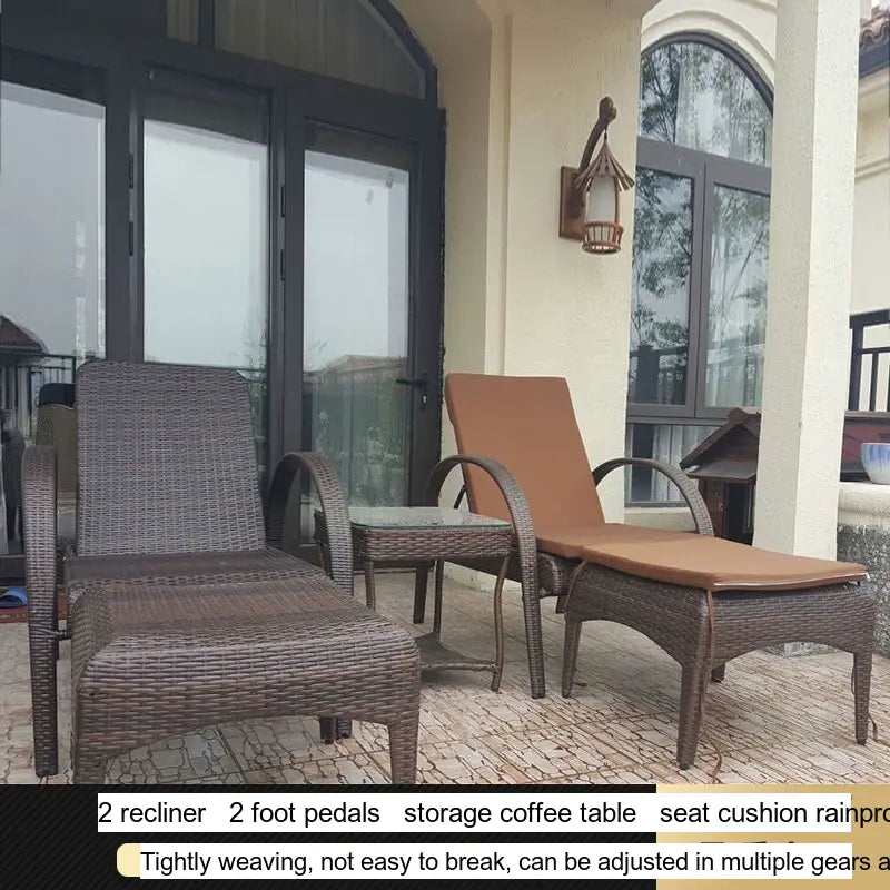 - Material: Expertly crafted from high-quality rattan with intricate weaving patterns, this sun lounger is designed for both durability and style.
