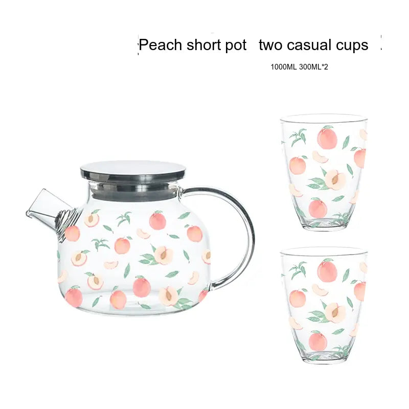 - Peach Short Glass Pot: Perfect for relaxed settings, this compact pot pairs beautifully with the elegant cups, making it ideal for intimate gatherings.