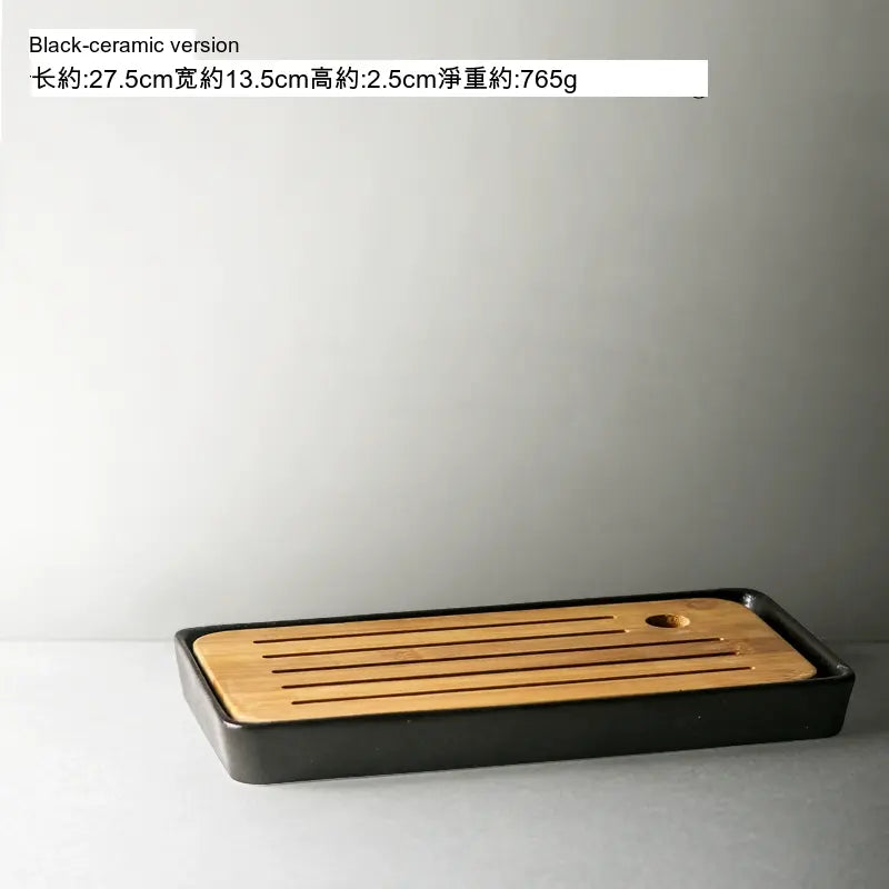 The dimensions of the tray vary based on the selected style. For example, the rectangular black ceramic edition measures approximately 27.5 cm in length and 13.5 cm in width, with a height of 2.5 cm. With such compact measurements, the tray is easy to store and transport, making it an ideal companion for travel, picnics, or gatherings. It provides a designated space for teaware, preventing spills and enhancing your tea experience.
