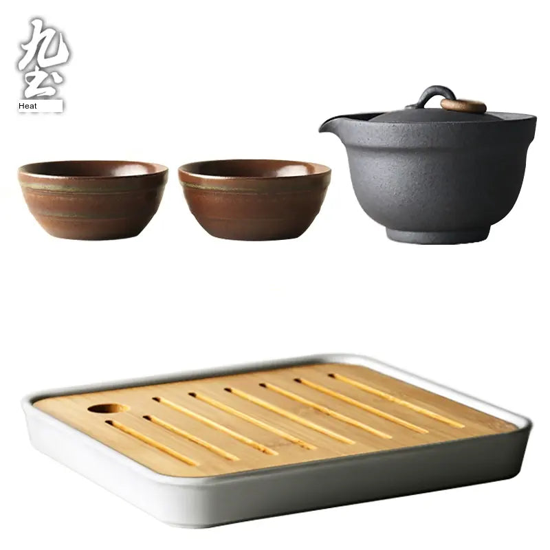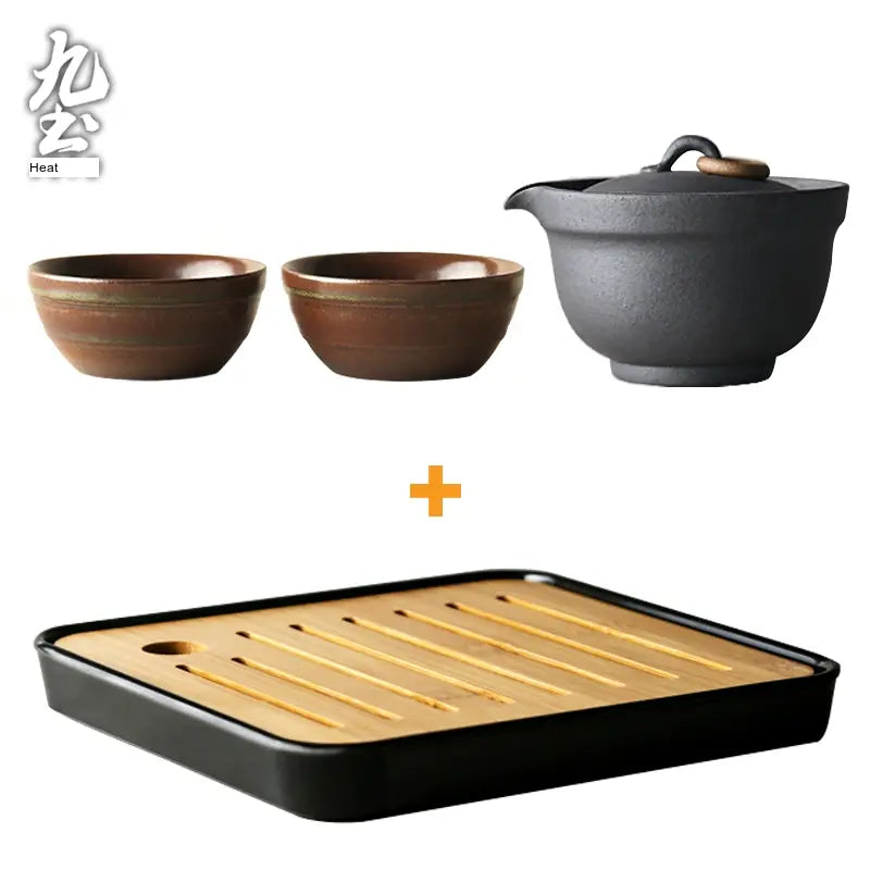 - One pot and two cups in Black Style with a ceramic black tea tray