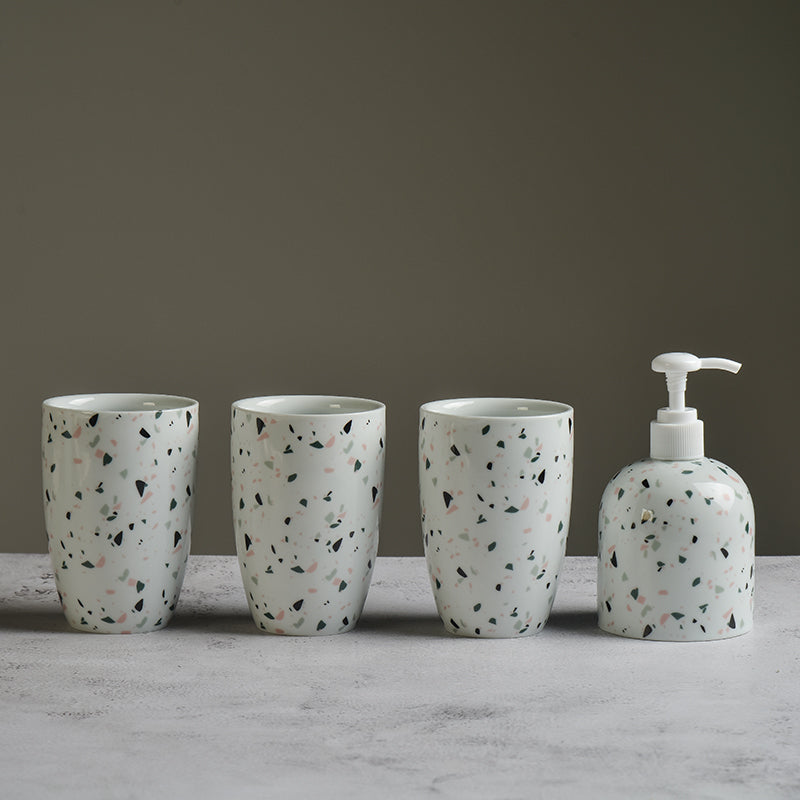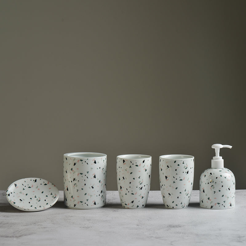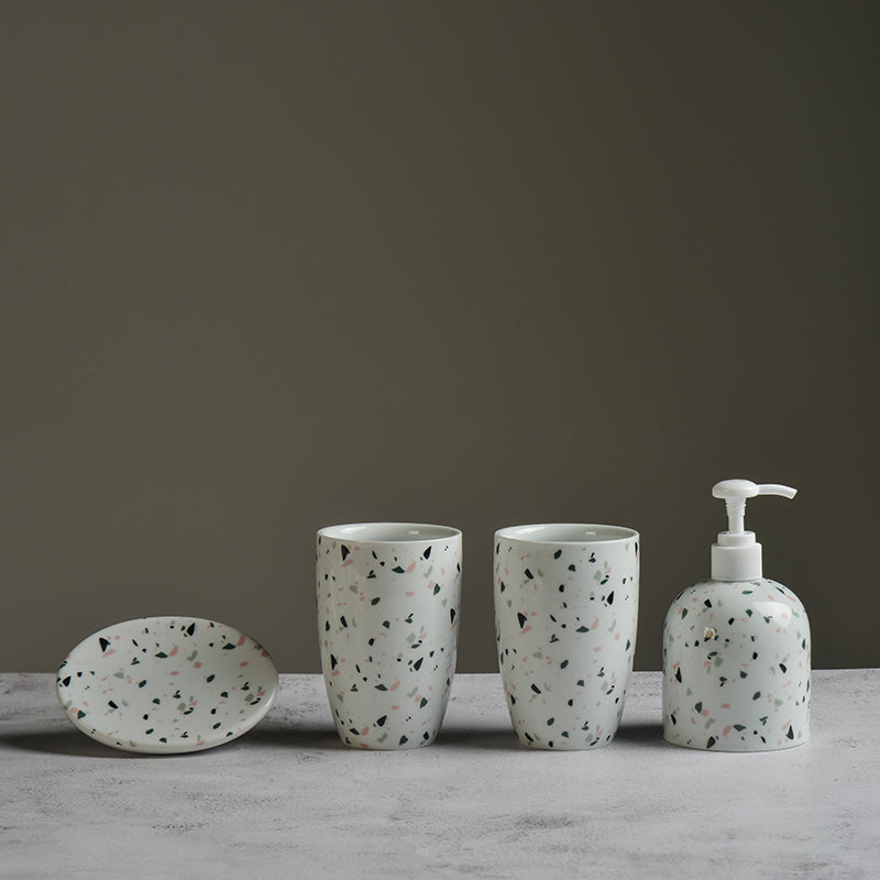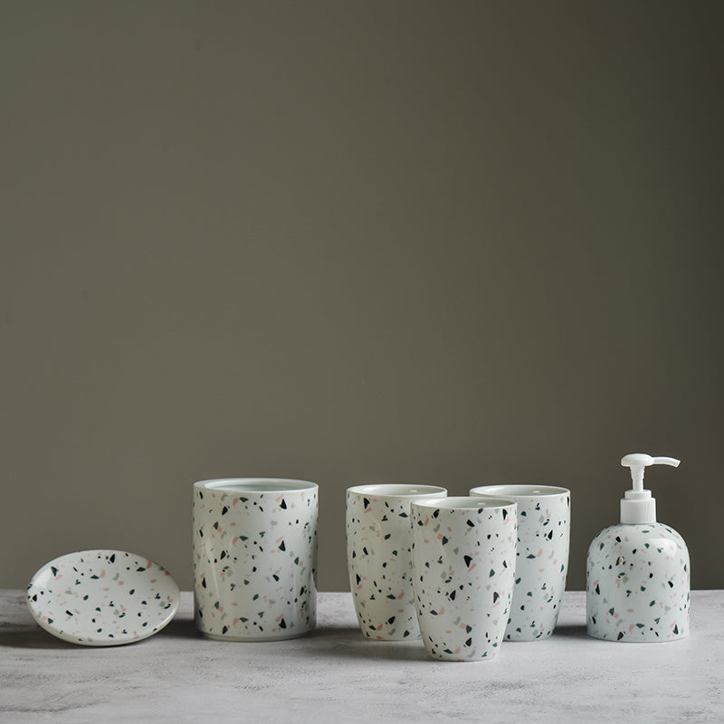 The TIANRUN Elowen set showcases a stunning terrazzo finish, elevating the overall look of your space. The random patterns and color blend create a unique aesthetic that adds a modern touch to any bathroom design. Whether your décor is minimalist or elaborate, these pieces will harmonize beautifully with your interiors, making your bathroom not just functional but also a place of relaxation.