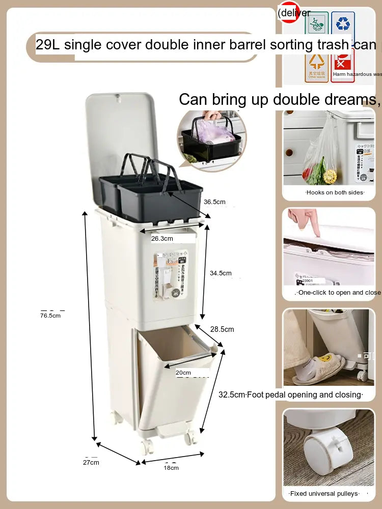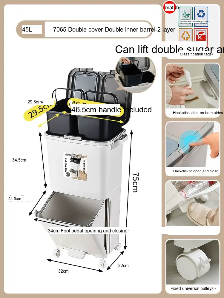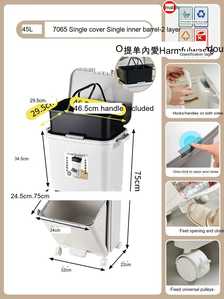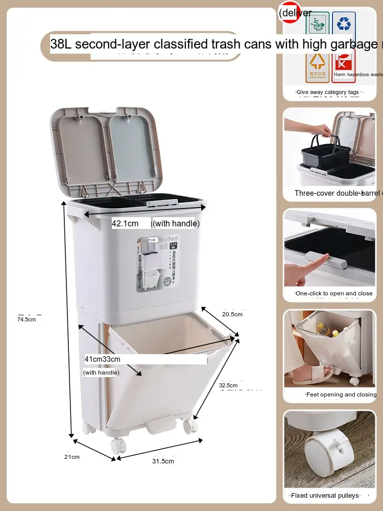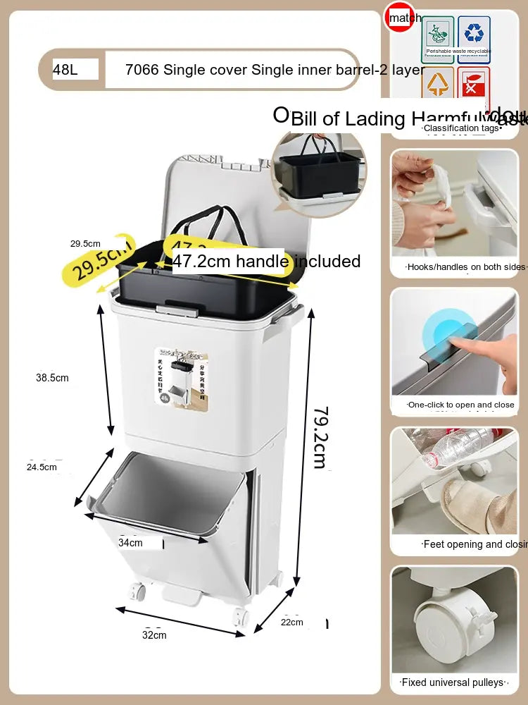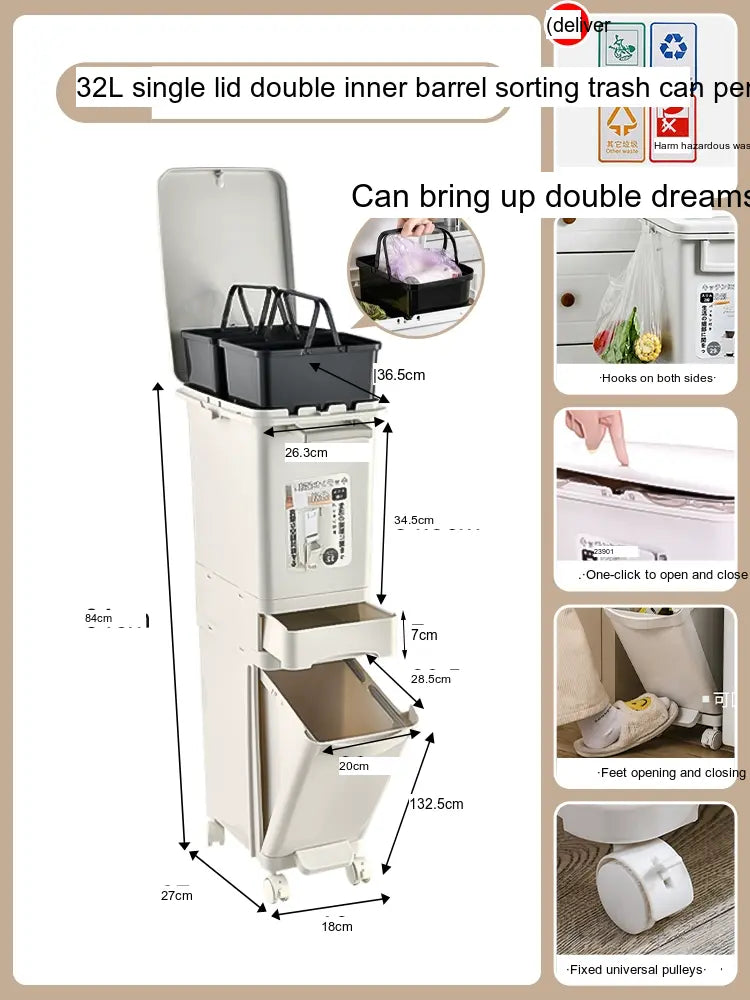 The JEKOJEKO Akira features a stunning double-layer design with ample space, combining form and function beautifully. With a generous capacity of 12L and beyond, this trash can is perfect for all areas of your home—kitchen, bathroom, laundry, or even the home office. The innovative double-layer structure allows for effective organization, helping you to easily separate recyclable materials from regular waste without any hassle.