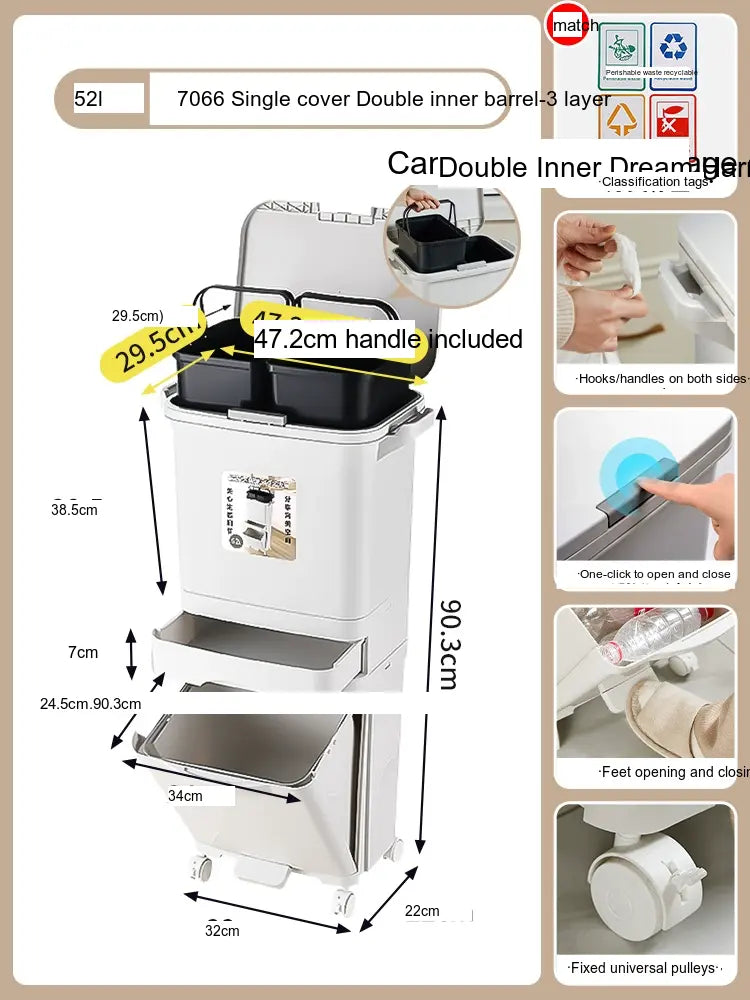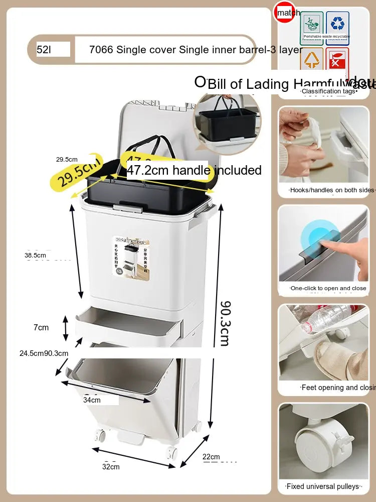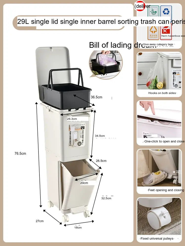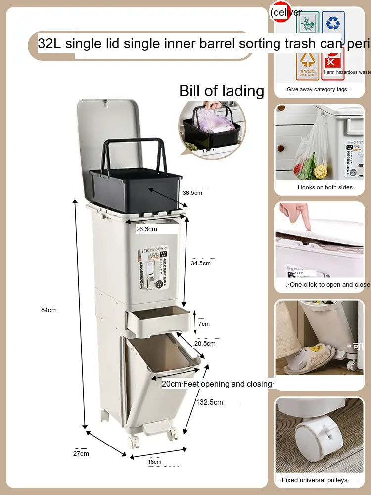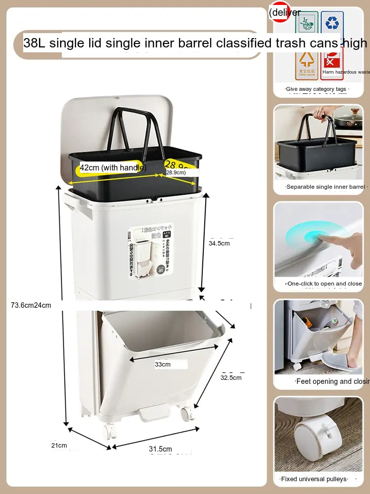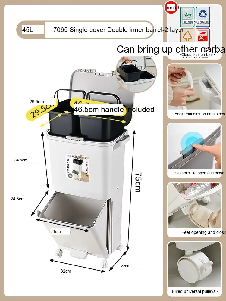 The JEKOJEKO Akira features a stunning double-layer design with ample space, combining form and function beautifully. With a generous capacity of 12L and beyond, this trash can is perfect for all areas of your home—kitchen, bathroom, laundry, or even the home office. The innovative double-layer structure allows for effective organization, helping you to easily separate recyclable materials from regular waste without any hassle.