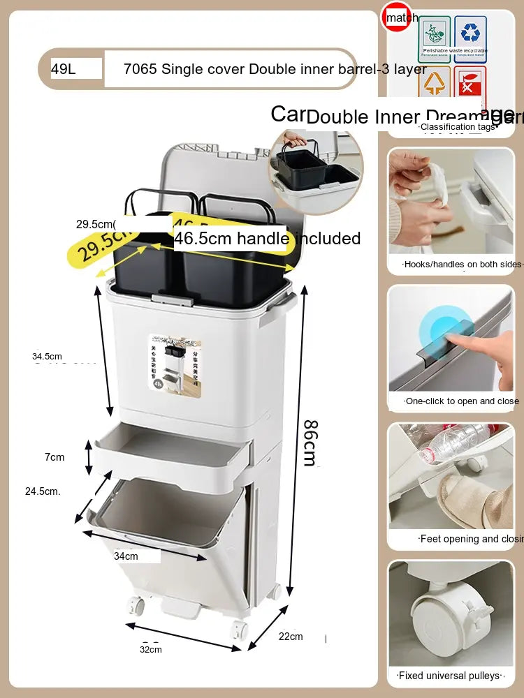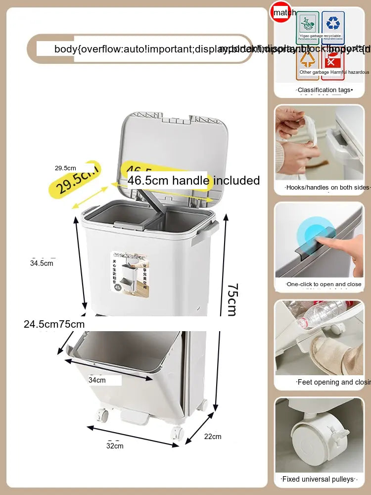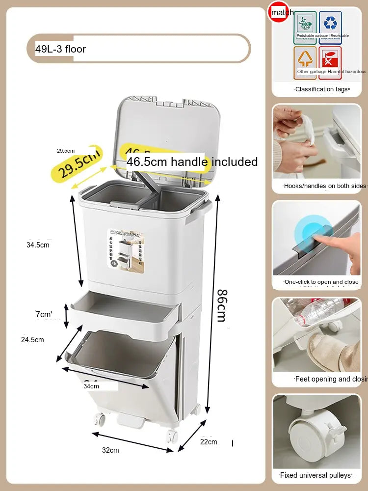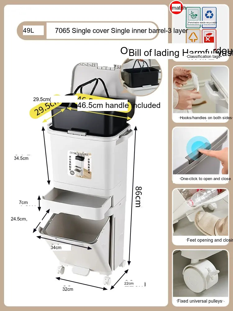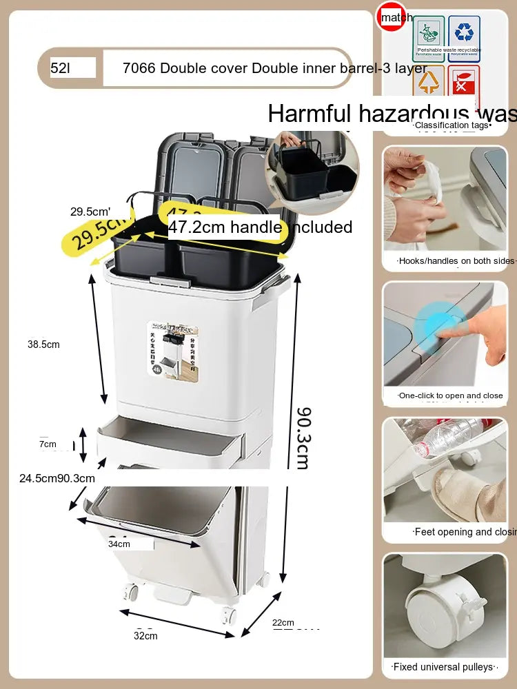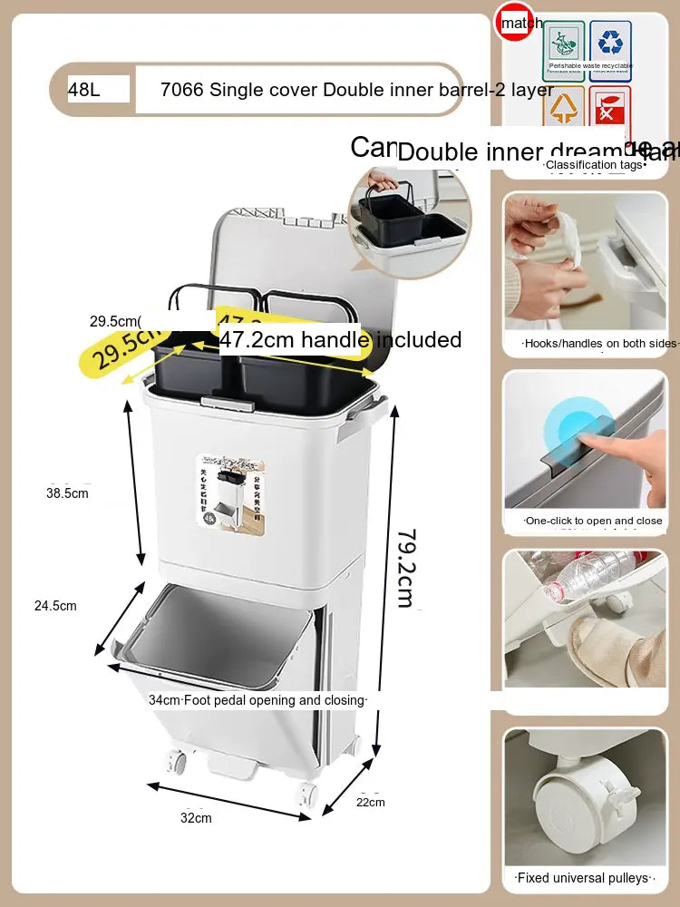 The JEKOJEKO Akira features a stunning double-layer design with ample space, combining form and function beautifully. With a generous capacity of 12L and beyond, this trash can is perfect for all areas of your home—kitchen, bathroom, laundry, or even the home office. The innovative double-layer structure allows for effective organization, helping you to easily separate recyclable materials from regular waste without any hassle.