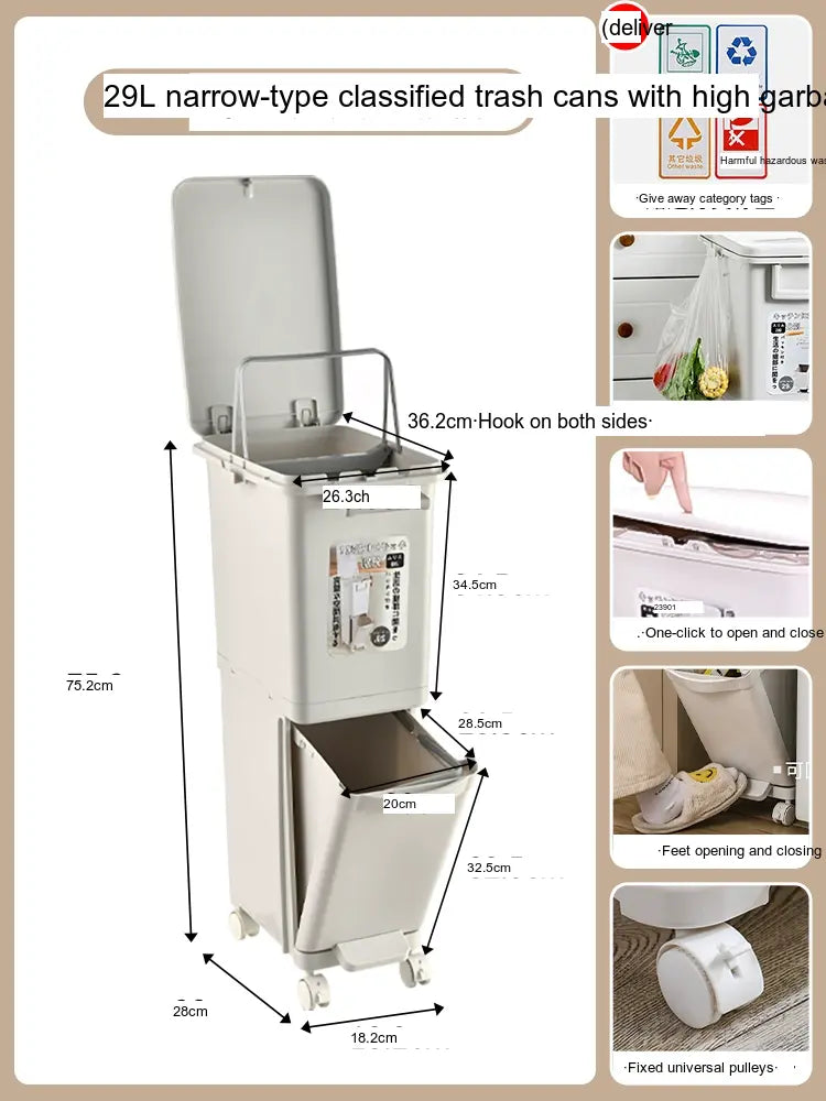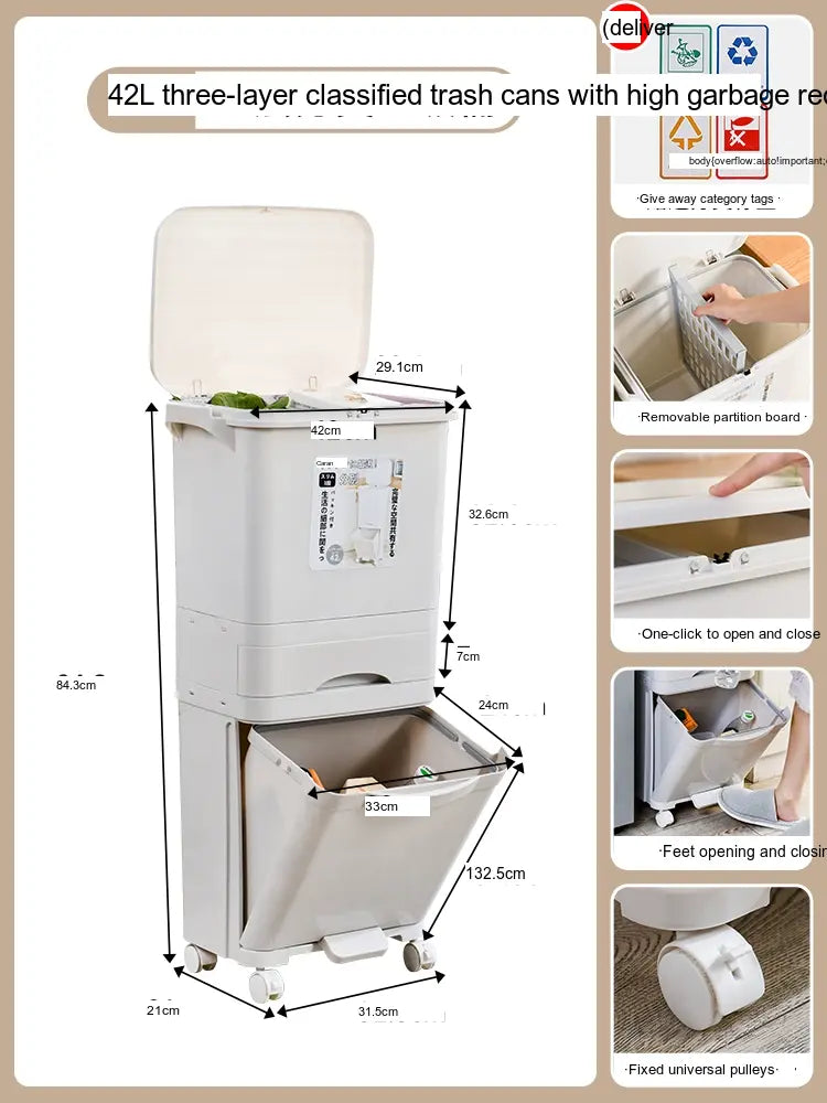 With multiple layers, this bin adapts to different waste management needs. Use the top compartment for everyday kitchen scraps, the middle pull-out drawers for recyclables, and the detachable portable bin for quick disposal or outdoor carrying. Its thoughtful design enhances convenience while supporting eco-friendly waste management at home.