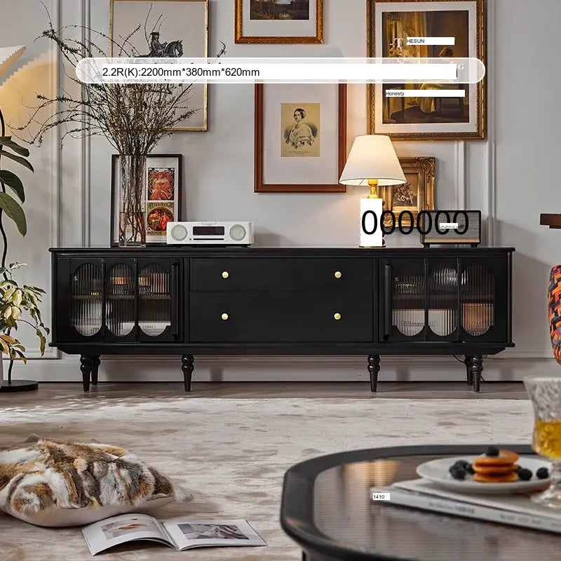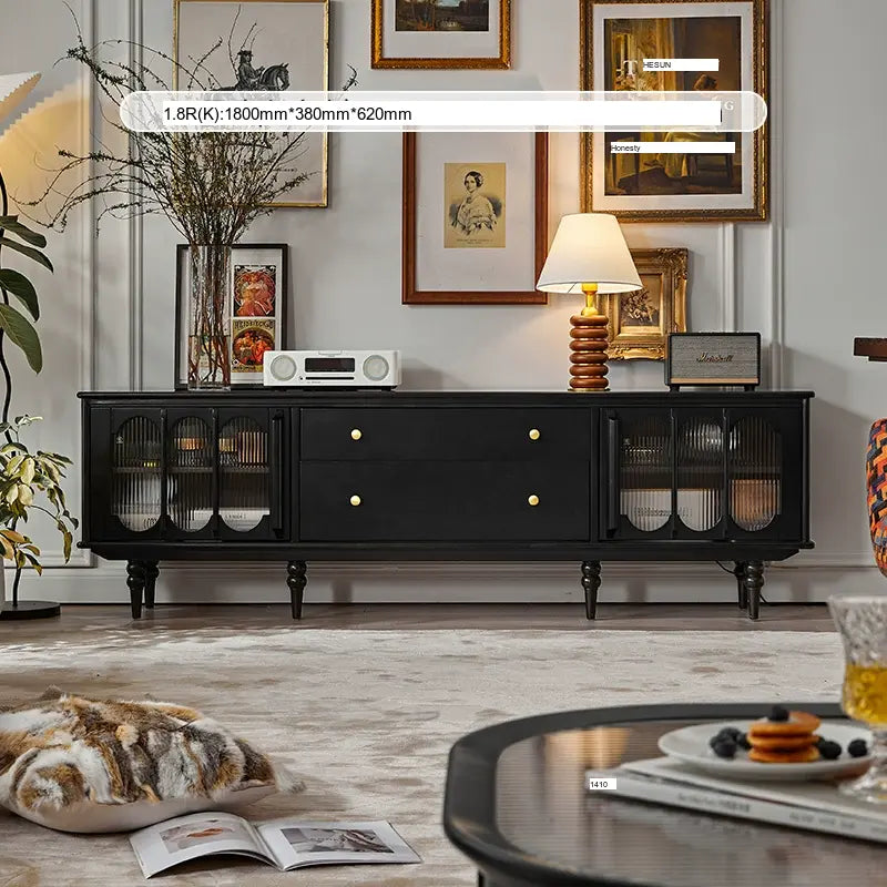 This cabinet boasts a classic silhouette that embodies elegance and sophistication. The smooth lines and polished edges enhance its refined look, while vintage-style hardware adds a touch of nostalgia. Decorative moldings and whimsical accents highlight the cabinet's artisanal craftsmanship, making it a standout accompaniment to your television setup.
