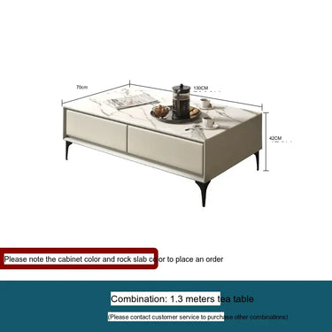 This coffee table and cabinet set showcases a sleek and contemporary design that seamlessly integrates into a variety of décor styles. Its elegant slate top not only brings a touch of sophistication but also provides a durable and elegant surface, perfect for both coffee cups and decorative items.