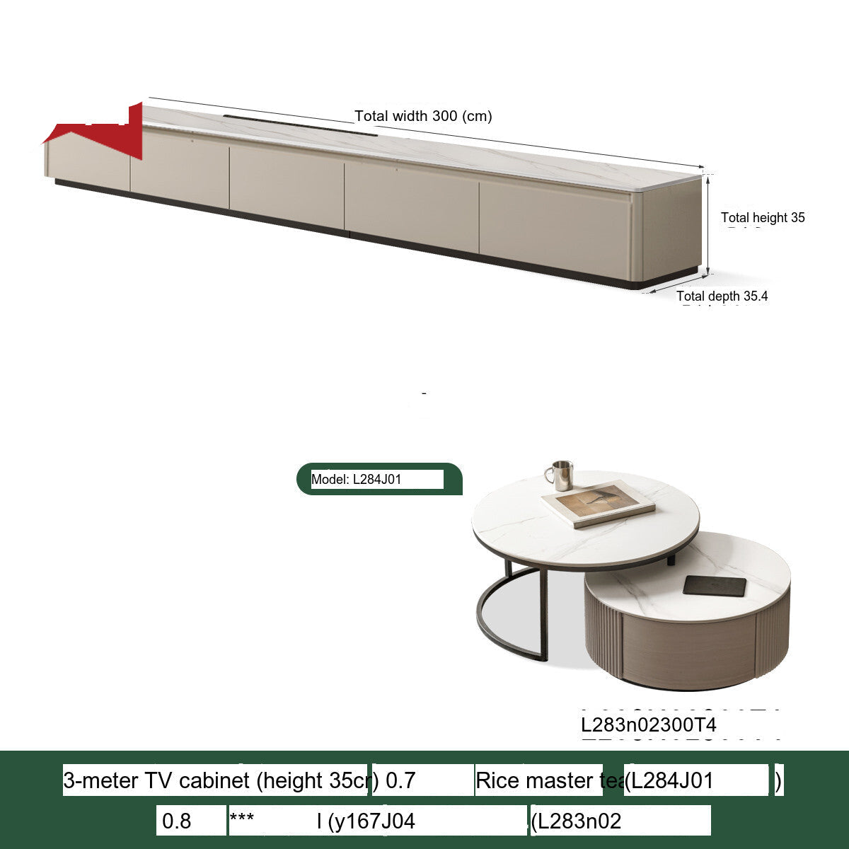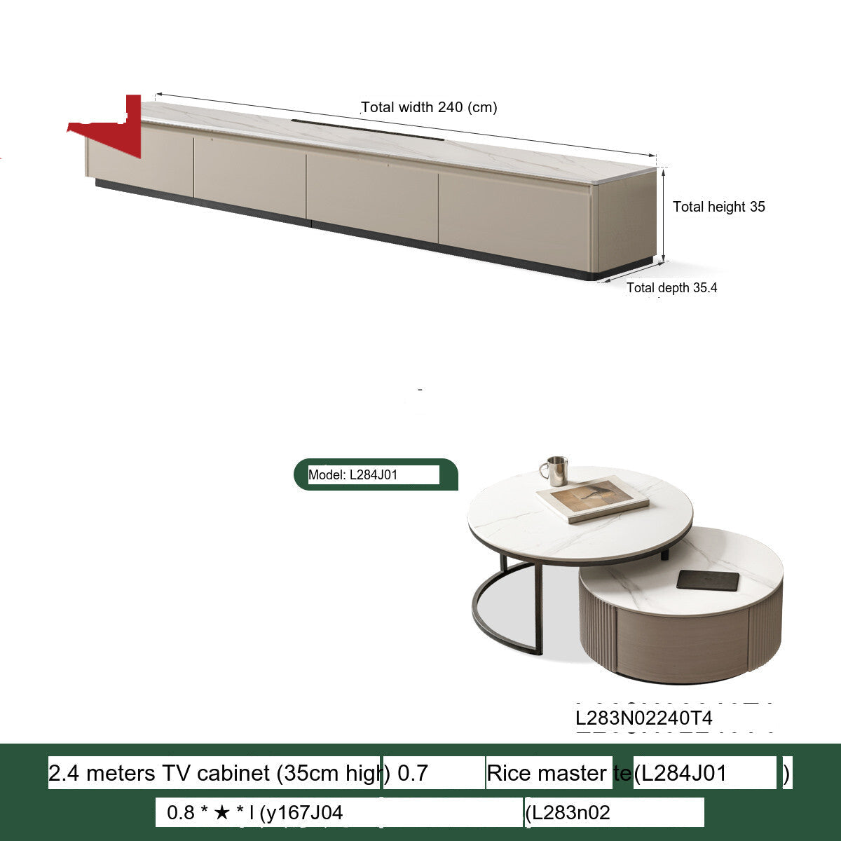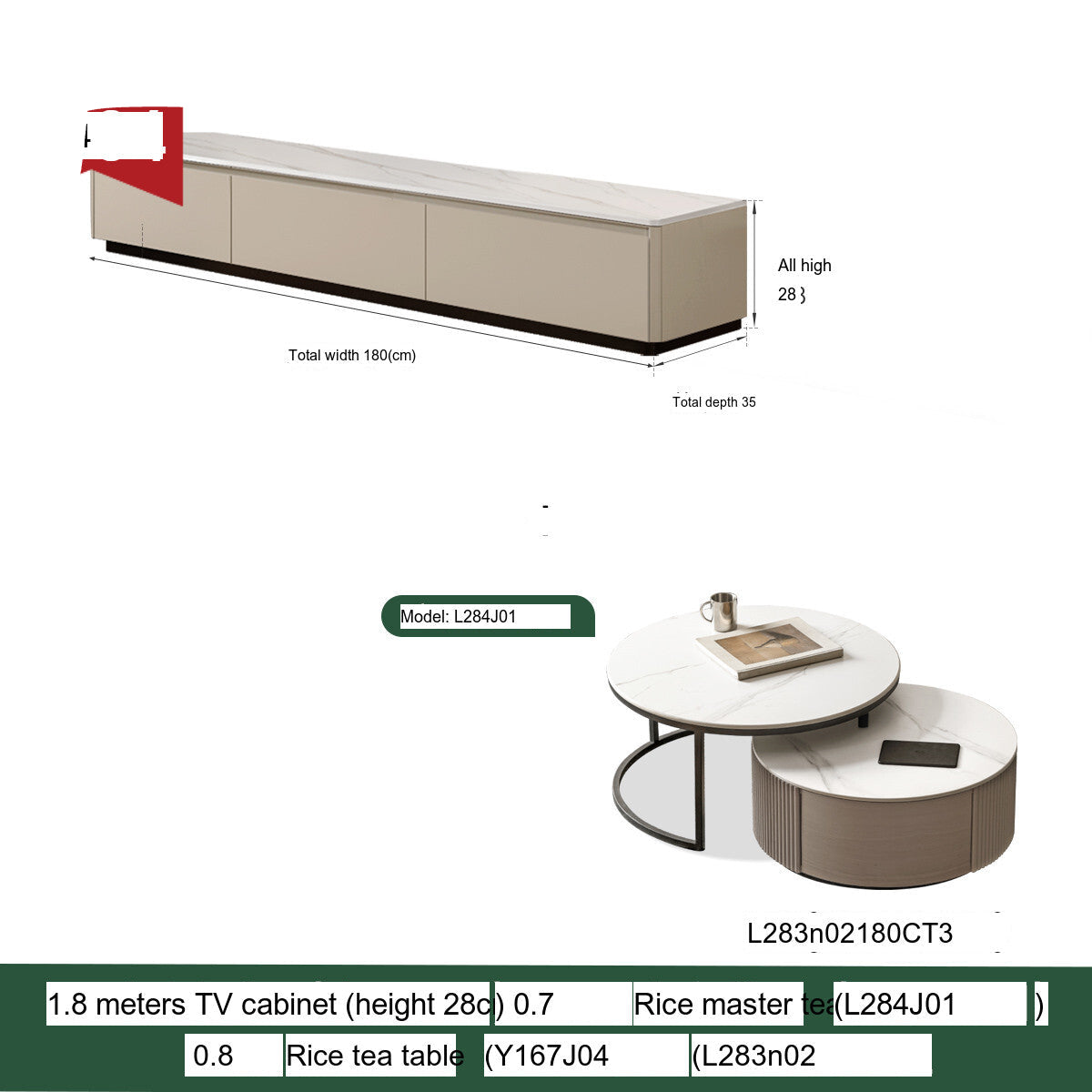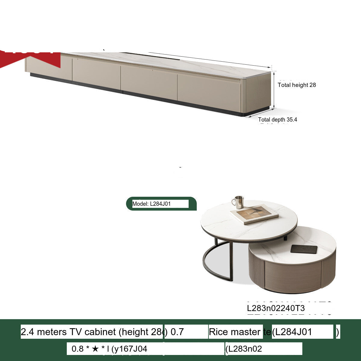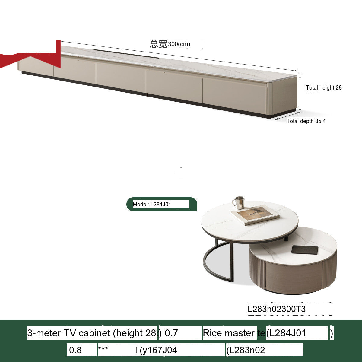 The GENJI Lysandra set includes several pieces, configurable to match your specific needs. Choose from various designs, such as a water-yunsha rock slab TV cabinet available in different heights and sizes. For instance, you can opt for the 1.8m model featuring a height of 28cm, or the larger 2.4m version with the same height for a more expansive display area. The innovative design includes options for main coffee tables and spacious television cabinets, offering style without compromising storage space.