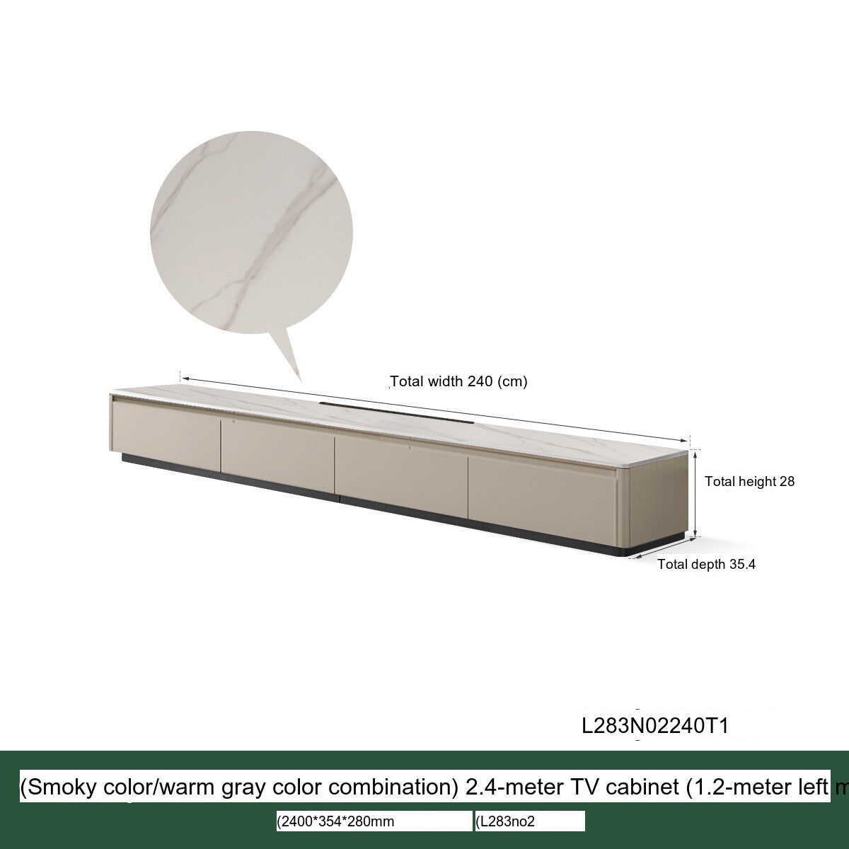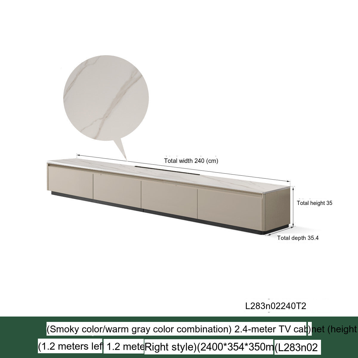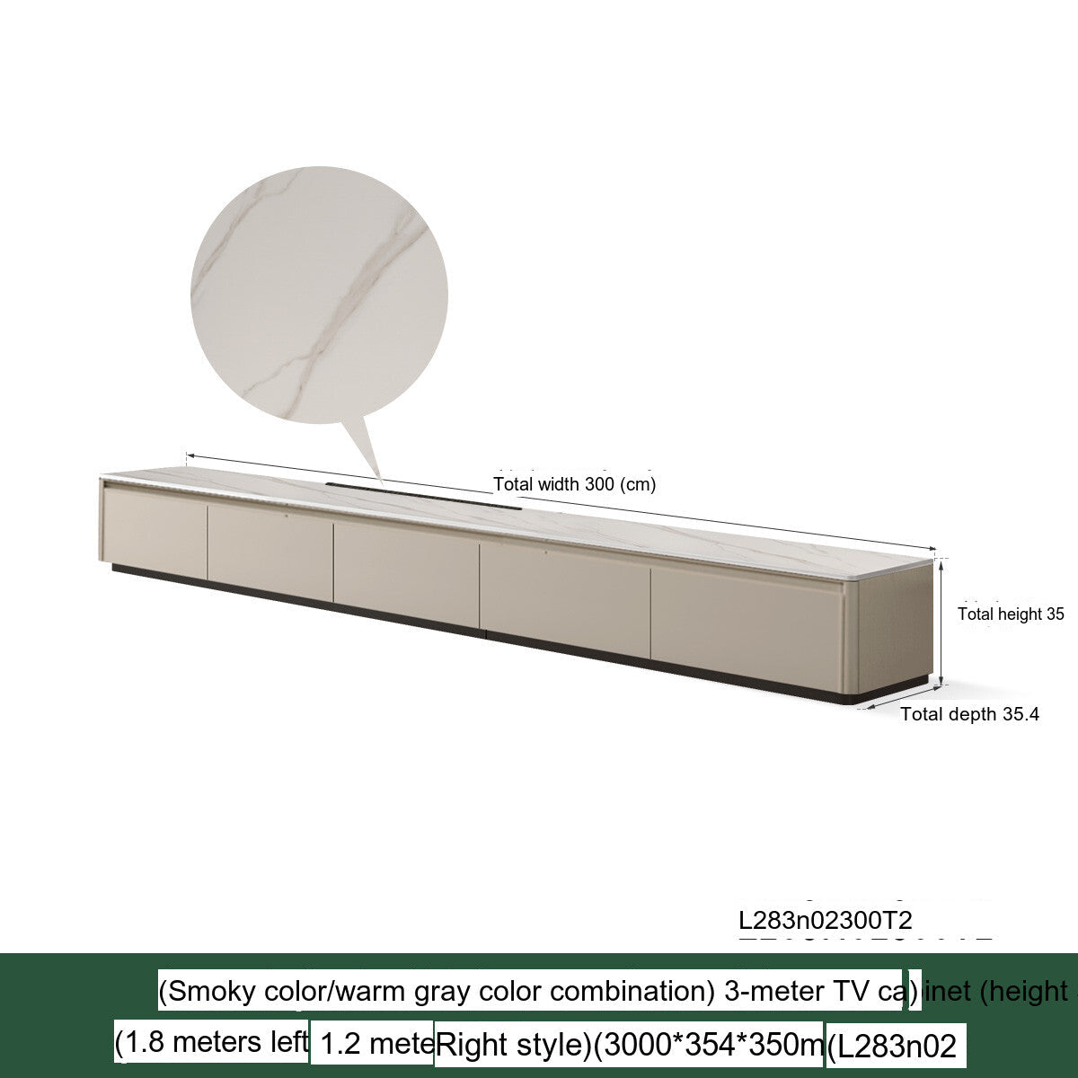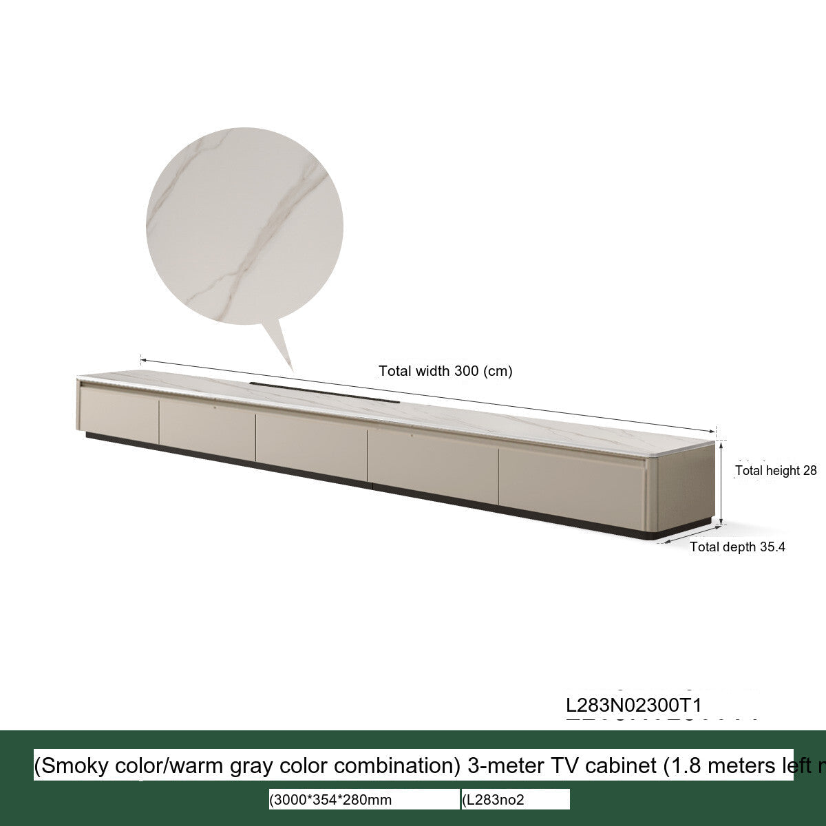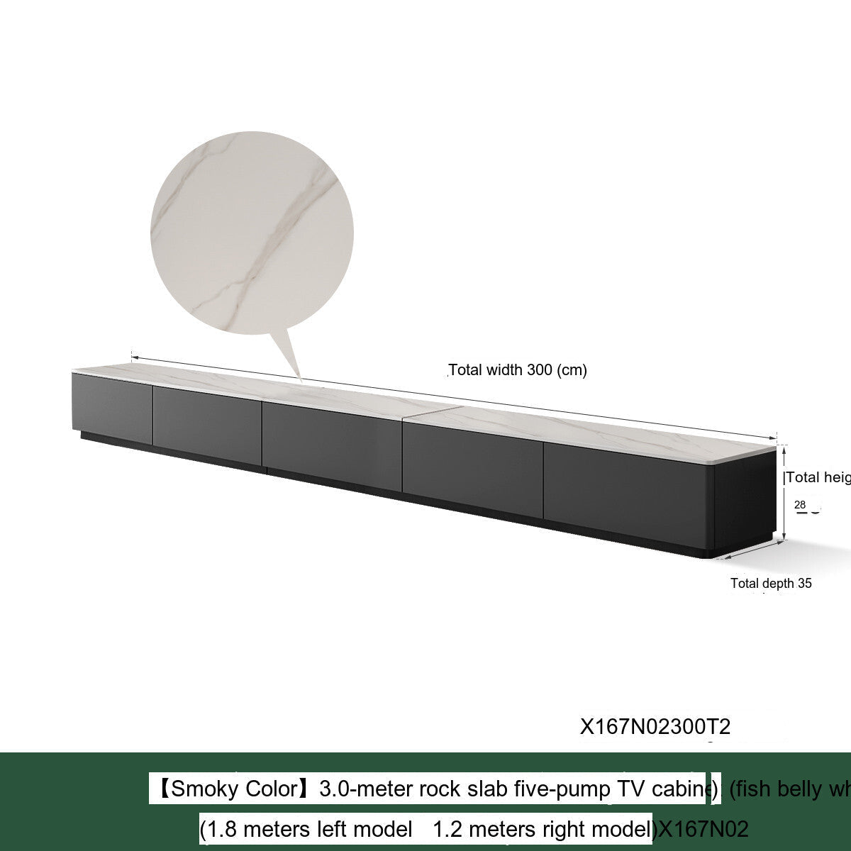 The GENJI Lysandra set includes several pieces, configurable to match your specific needs. Choose from various designs, such as a water-yunsha rock slab TV cabinet available in different heights and sizes. For instance, you can opt for the 1.8m model featuring a height of 28cm, or the larger 2.4m version with the same height for a more expansive display area. The innovative design includes options for main coffee tables and spacious television cabinets, offering style without compromising storage space.