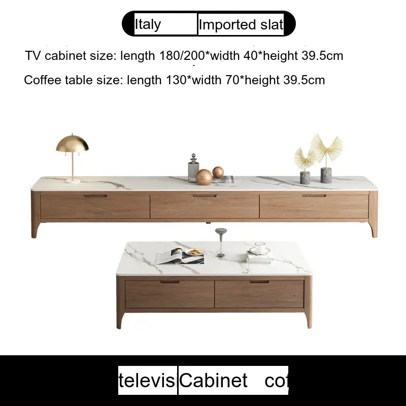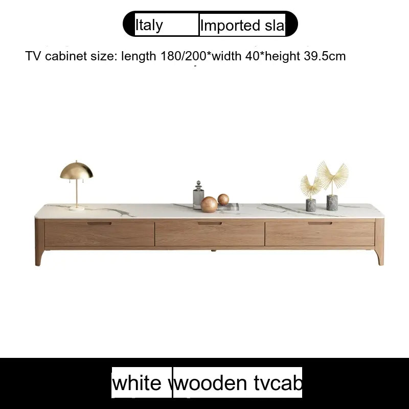 LANLAN Zephyr Elegant Natural Wood Marble TV Cabinet