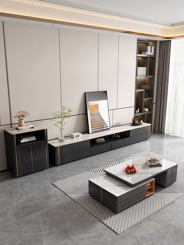 Enhance your decorating efforts by pairing the QUANMU Santiago TV cabinet with our matching retractable coffee table. This option allows for a cohesive and harmonious design in your sitting area, creating an elevated aesthetic while benefiting from our special bundled offers. Captivate your guests and transform your space into a luxurious lounging area without stretching your budget!