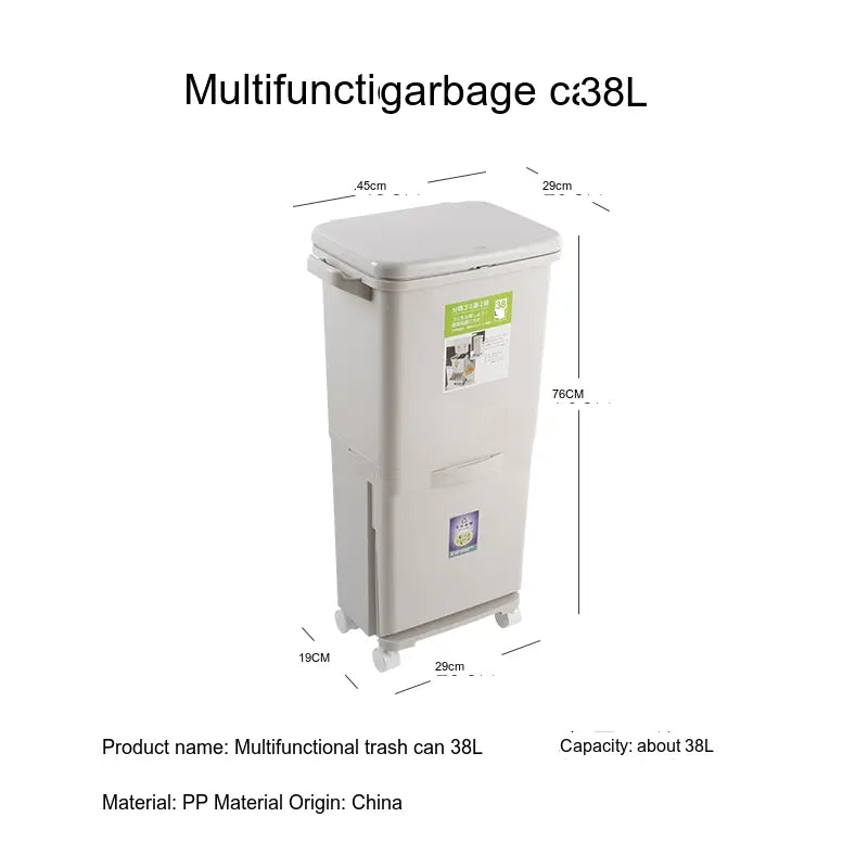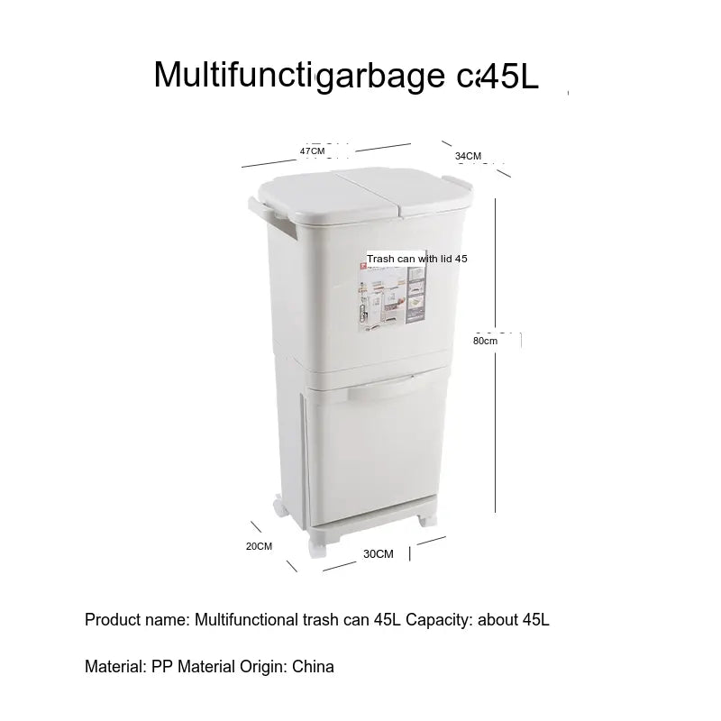 This multi-functional trash can comes in several models to cater to different needs. The 42L version with a handy drawer is designed for those who thrive on organization, providing ample space for both regular and recyclable waste. If you prefer a touchless experience, the 45L foot-pedal model allows for easy operation when your hands are occupied, while the compact 38L model suits smaller living spaces without compromising on efficiency. The double-layer, double-cover option ensures that larger families or those generating more waste have the capacity they need.