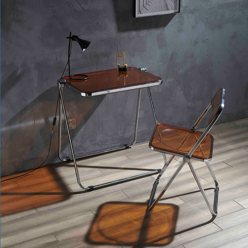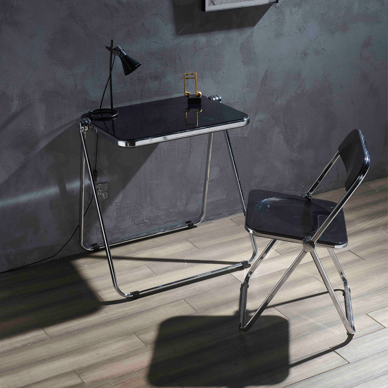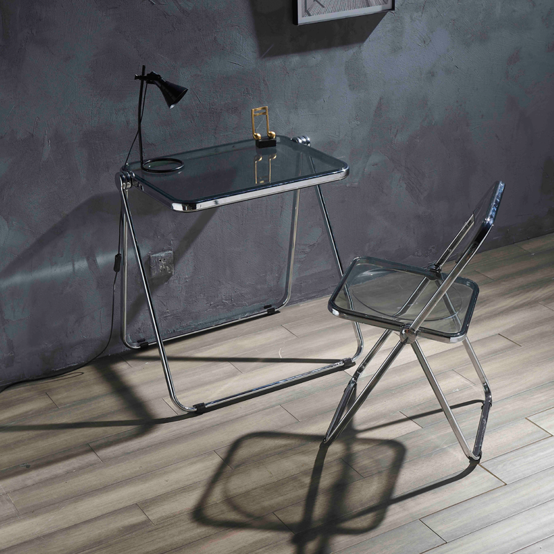With its chic minimalist design, this desk enhances the visual appeal of any room. The combination of a durable PC desktop and a stainless steel frame gives it a contemporary edge and ensures longevity. Available in a selection of fashionable colors—including transparent, smoke grey, black, white, and tea color—this desk allows you to express your style while catering to your practical needs.
