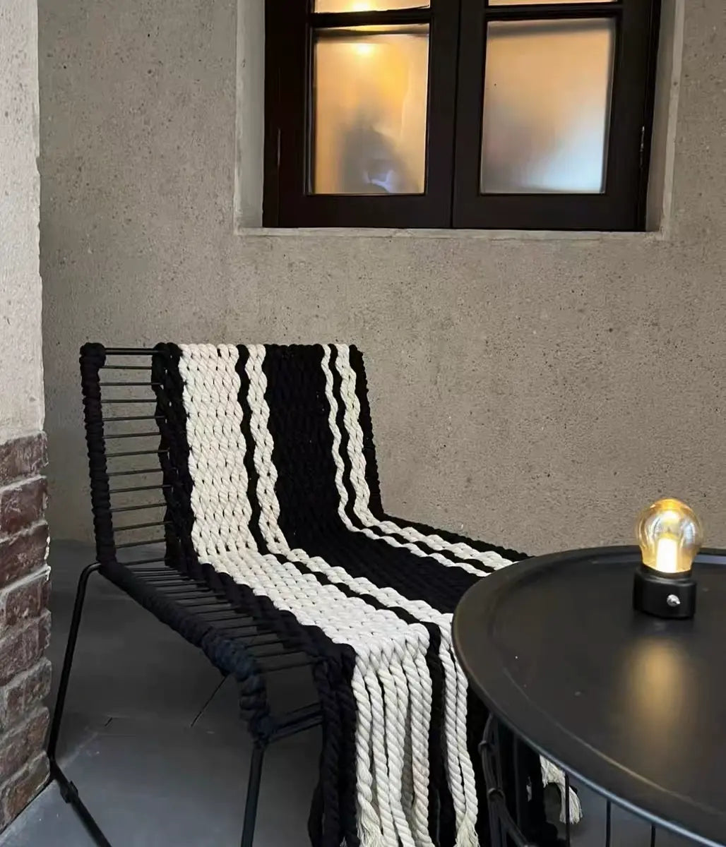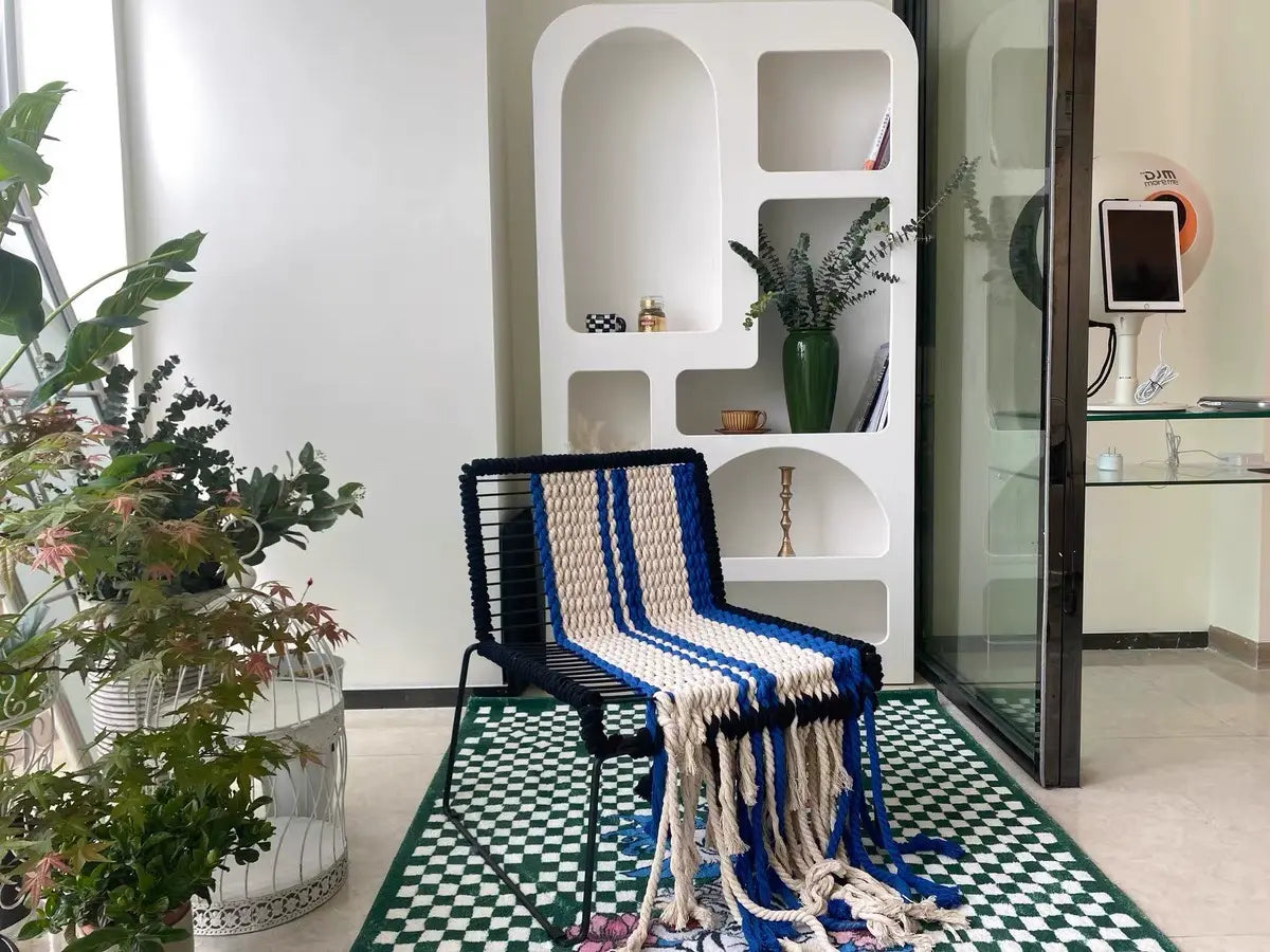The Yuuto armchair showcases a minimalist yet captivating design featuring a combination of soft, inviting colors such as Green and Off-White, Blue and Off-White, Red and Pink, White with Black Thread, and a classic Black and White woven finish. Each color pairing adds a unique touch to your decor, making it suitable for a variety of interior themes. The choice of colors and the soothing pattern are meant to create a calming atmosphere, inviting relaxation in your favorite spaces.