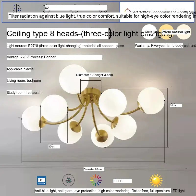 - Customizable Lighting: This ceiling lamp is available in several configurations, including options with 3, 5, or 8 heads, allowing you to choose the perfect fit for your lighting requirements. With LED configurations providing either warm light for relaxation or bright white light for productivity, the ISIHO Marcellus adapts to your specific environment and mood effortlessly.
