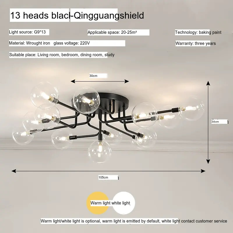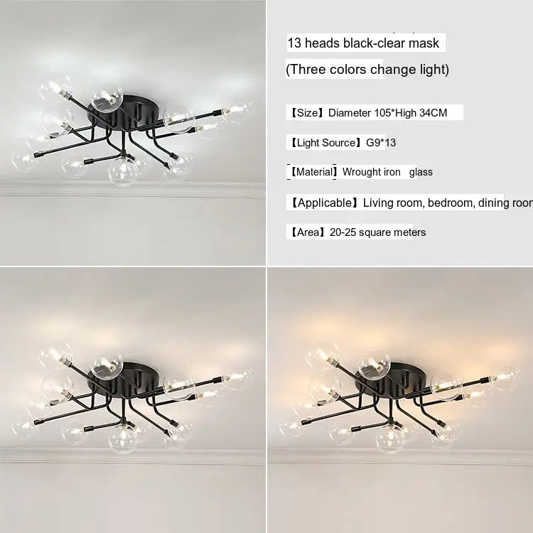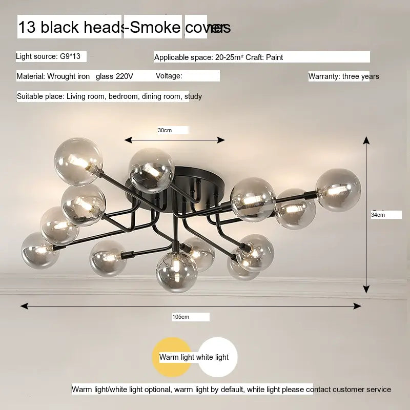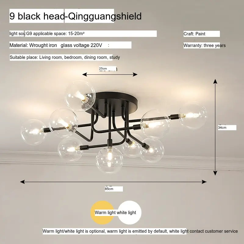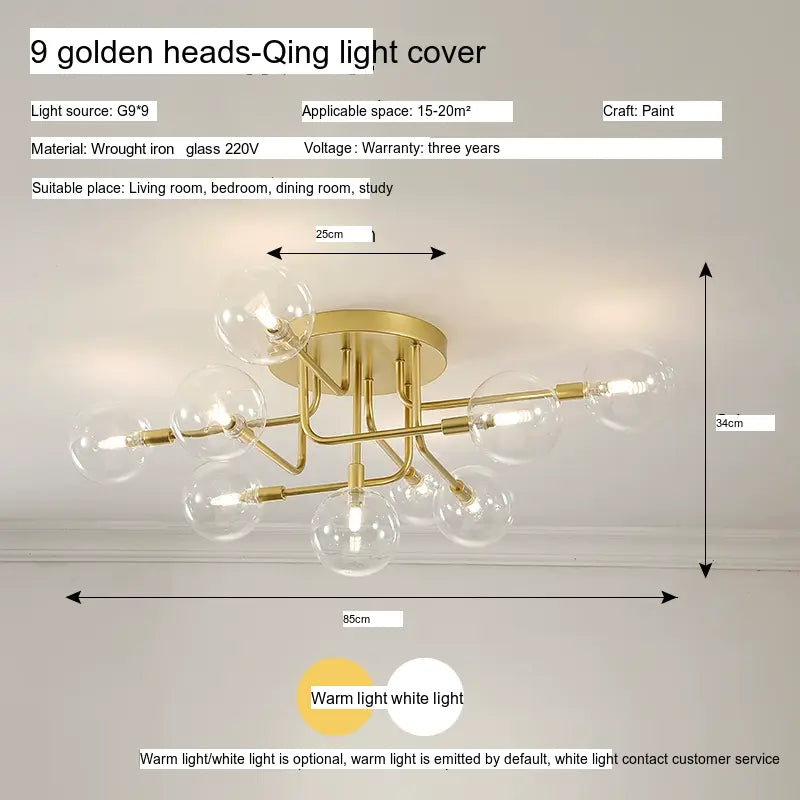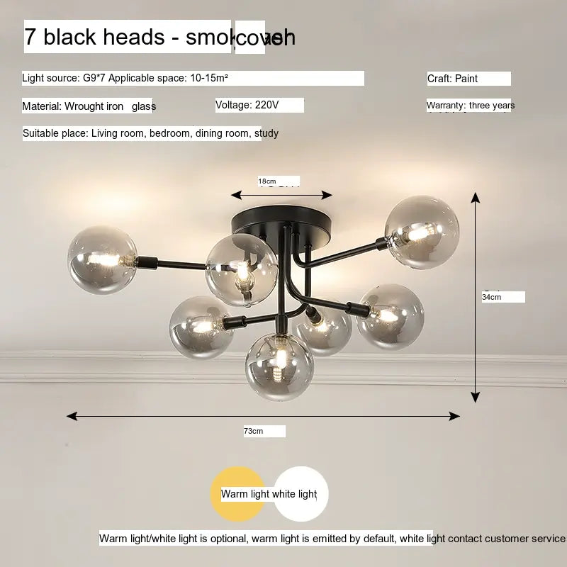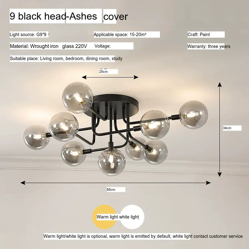 Characterized by its sleek lines and minimalistic design, the ISIHO Santiago ceiling lamp serves as a focal point for any room. Its artistic arrangement of lamp heads is both visually captivating and purposefully designed to maximize light distribution, ensuring that every corner of your space is illuminated. Available in configurations of up to 9 heads, this lamp adapts gracefully to various settings, from intimate bedrooms to expansive living rooms, fitting seamlessly into any style of decor.
