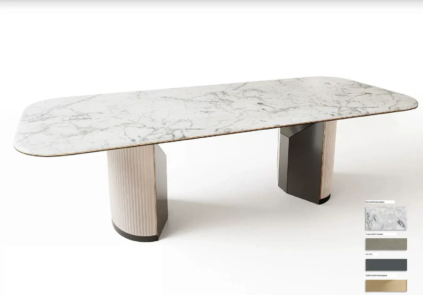 • Design & Aesthetic: Available in a sophisticated visionnaire finish, the collection features both round and square options to cater to different tastes and spaces. The round table measuring 135cm in diameter or the spacious square design of 180cm x 95cm brings a contemporary touch to your home.