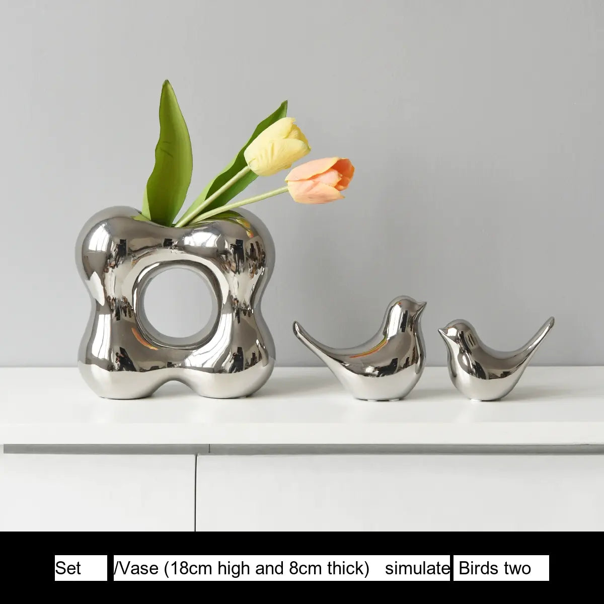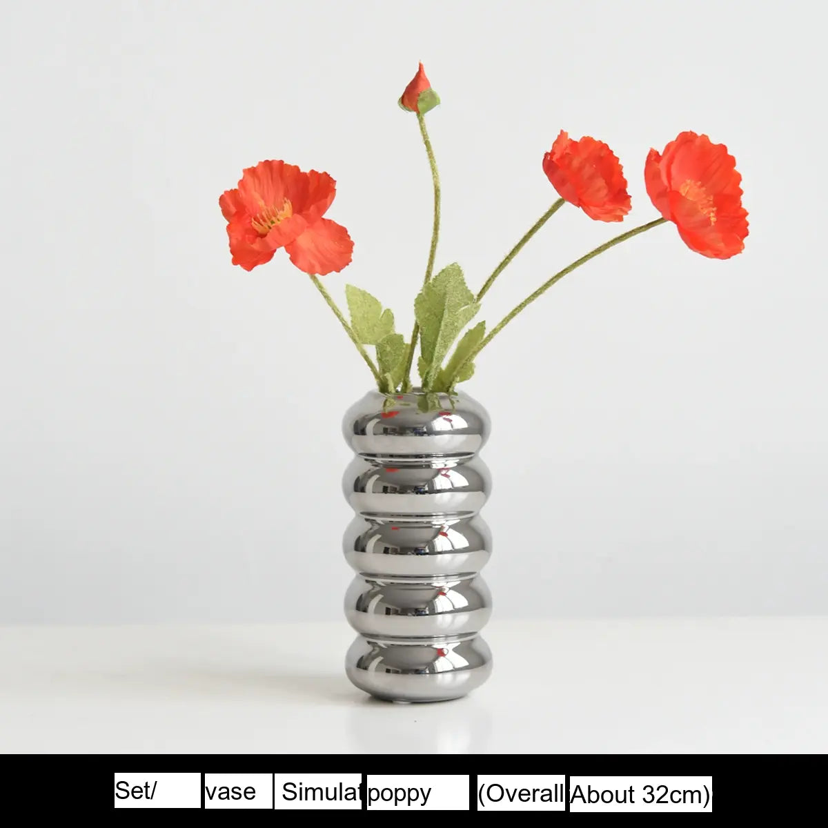 The sleek silhouette of the Alaric vase not only appeals visually but also aligns with contemporary decor trends. Its reflective silver surface enhances light and space, making rooms feel larger and more open. The design serves as a perfect backdrop for both bold and subtle floral arrangements, from striking monochromatic bouquets to bright and lively mixes.