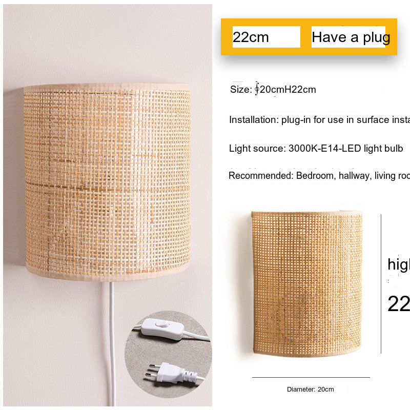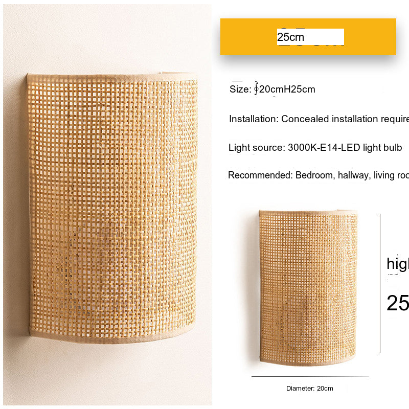With a diameter of 20 cm and height options of 22 cm or 25 cm, this wall-mounted light features a sleek and understated design that complements a variety of home decor styles. Its natural materials lend a warm, organic feel that contrasts beautifully with contemporary spaces. The sconce lights up with a single E14 LED bulb, providing an effective illumination area of approximately 3-5 square meters, which is ideal for intimate settings.