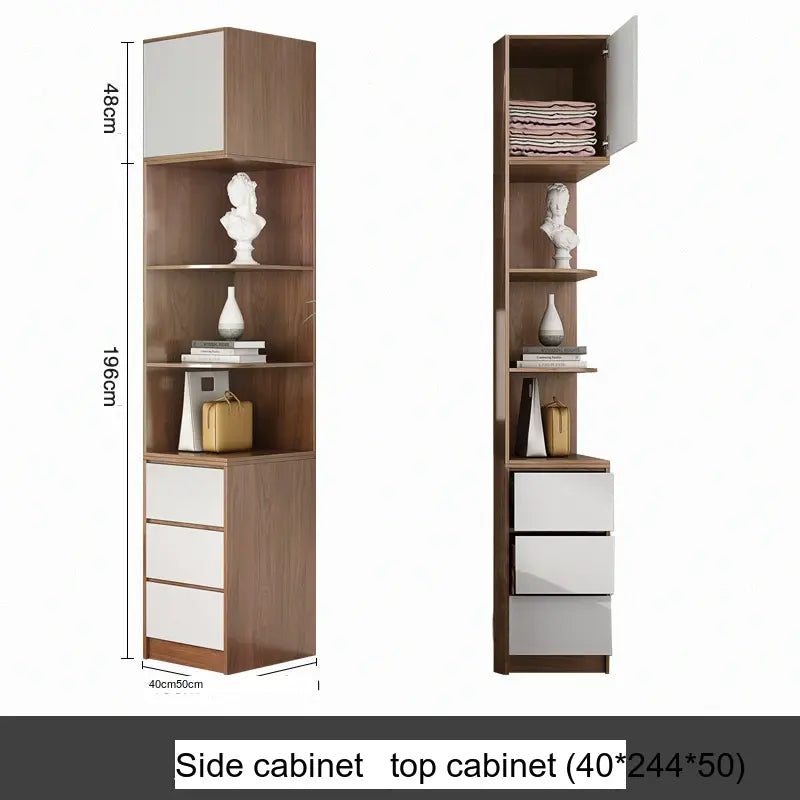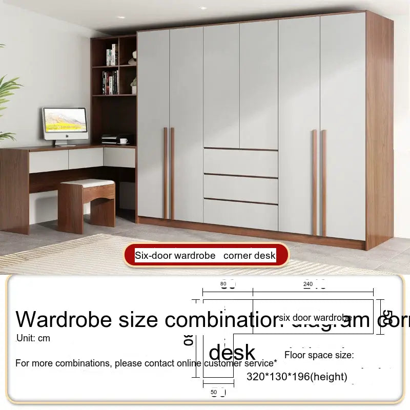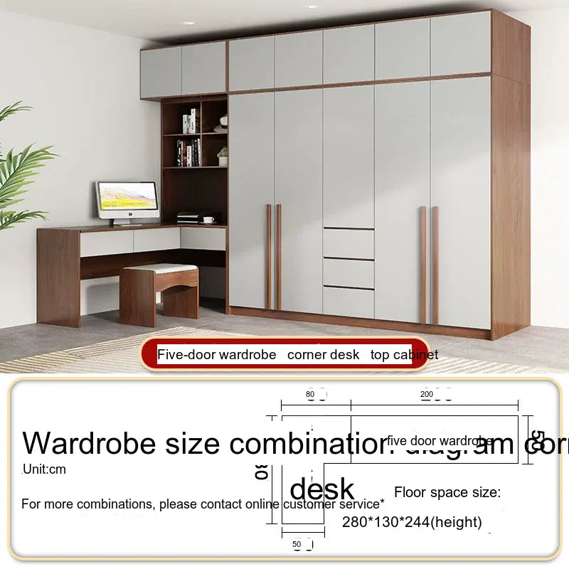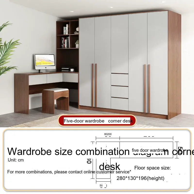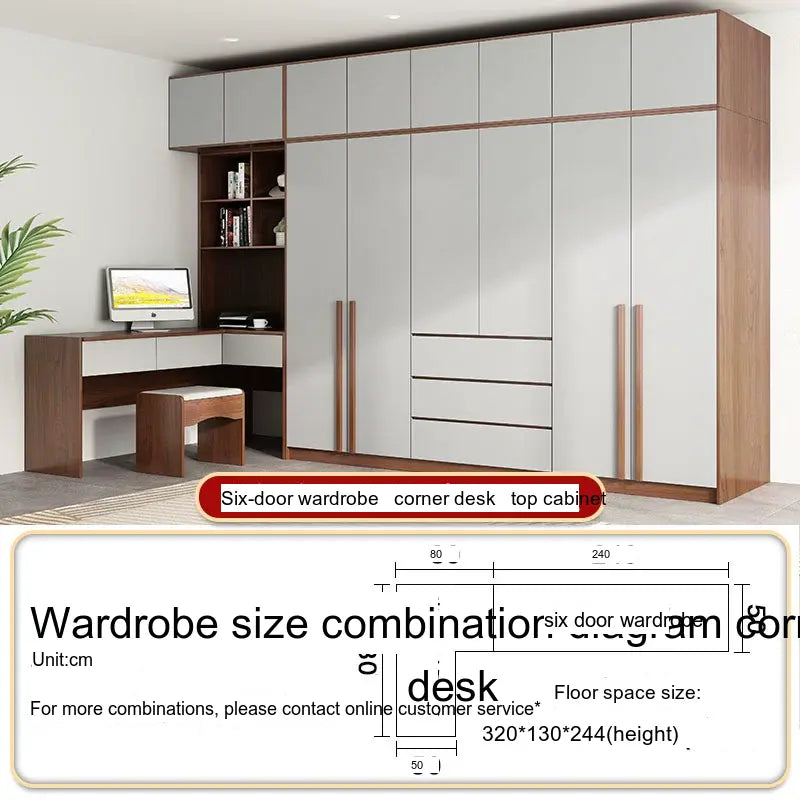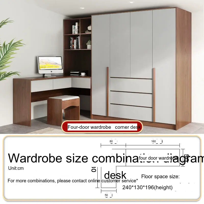 The wardrobe comes in a stylish light gray and walnut color combination, providing an inviting ambiance while also allowing for personalization to match your existing décor. You can choose from individual wardrobes or opt for configurations that include additional top cabinets or even corner desks, enhancing both utility and style.