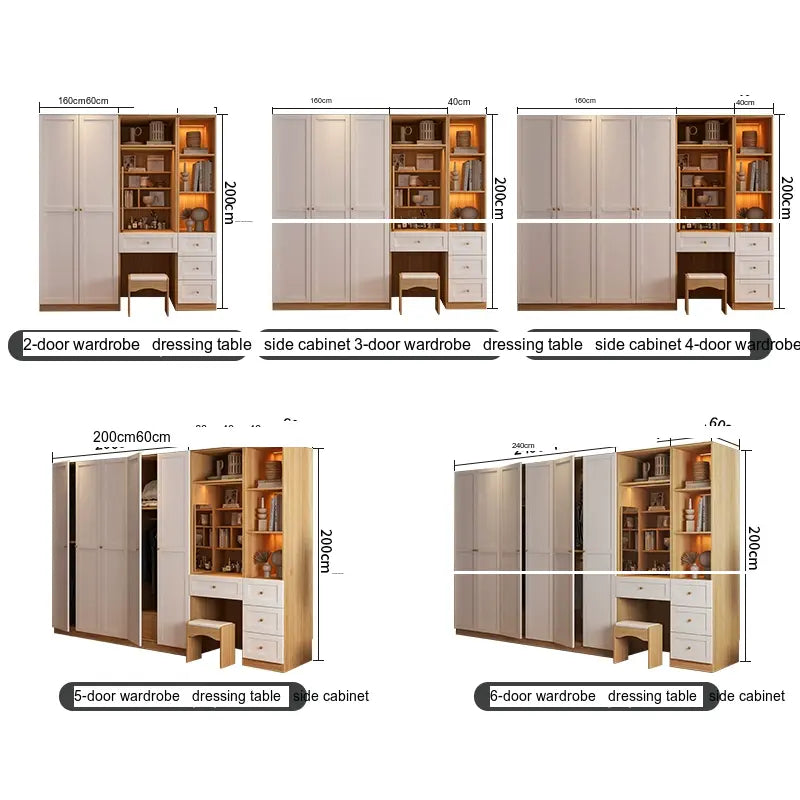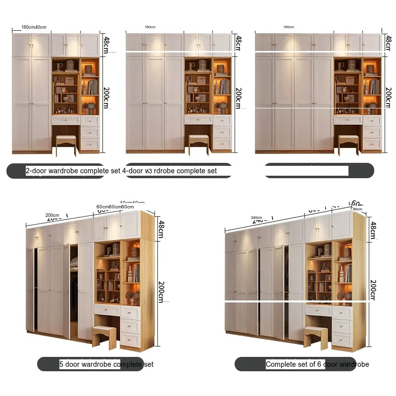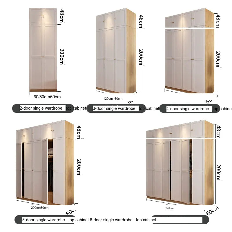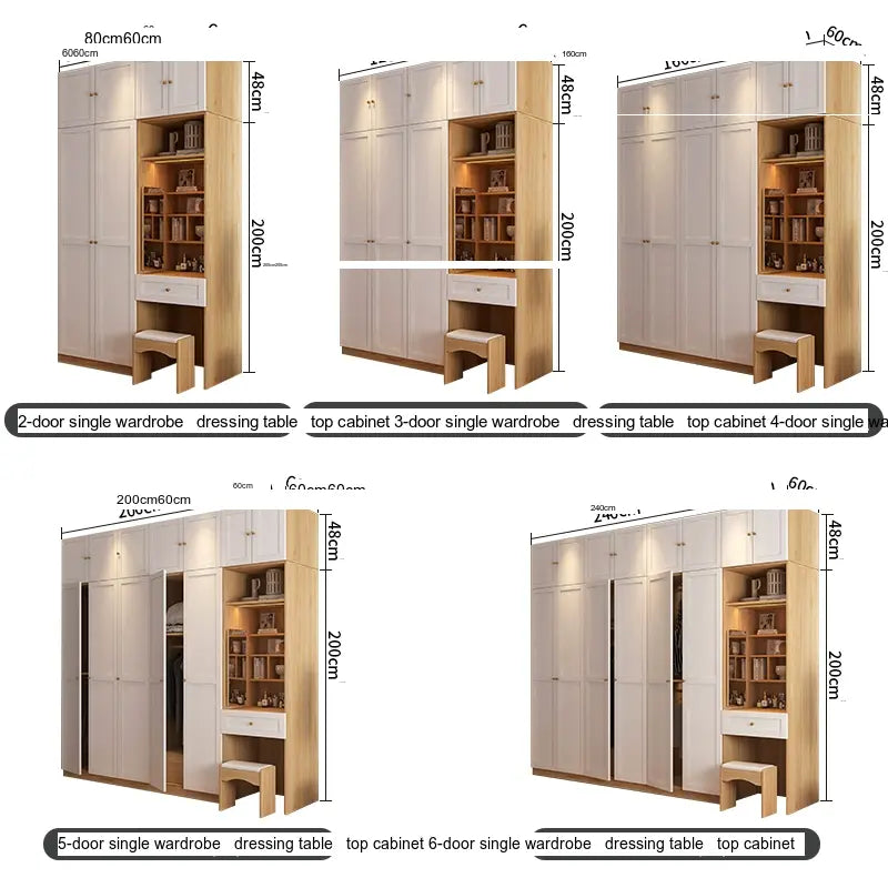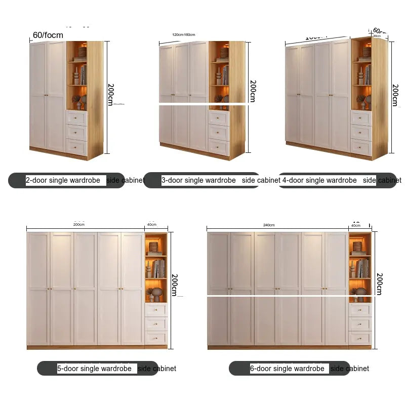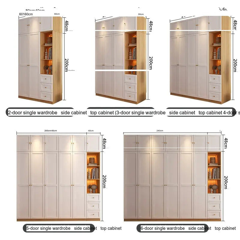 The Penelope wardrobe system boasts an impressive selection of configurations to meet your unique needs. Choose from a variety of combinations including a standard wardrobe, a wardrobe with a top cabinet, a wardrobe with a side cabinet, or a complete set featuring both a side and top cabinet. Each configuration is designed to provide optimal storage solutions and can be tailored to fit any room size, making it an incredibly flexible option for any home layout.