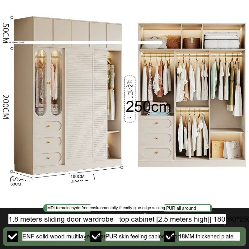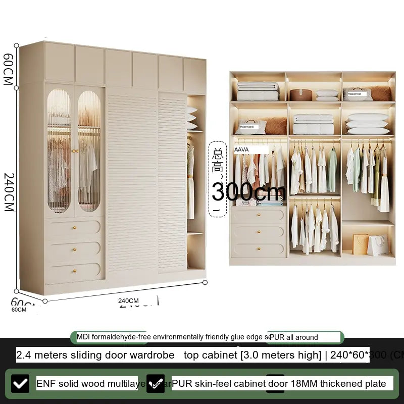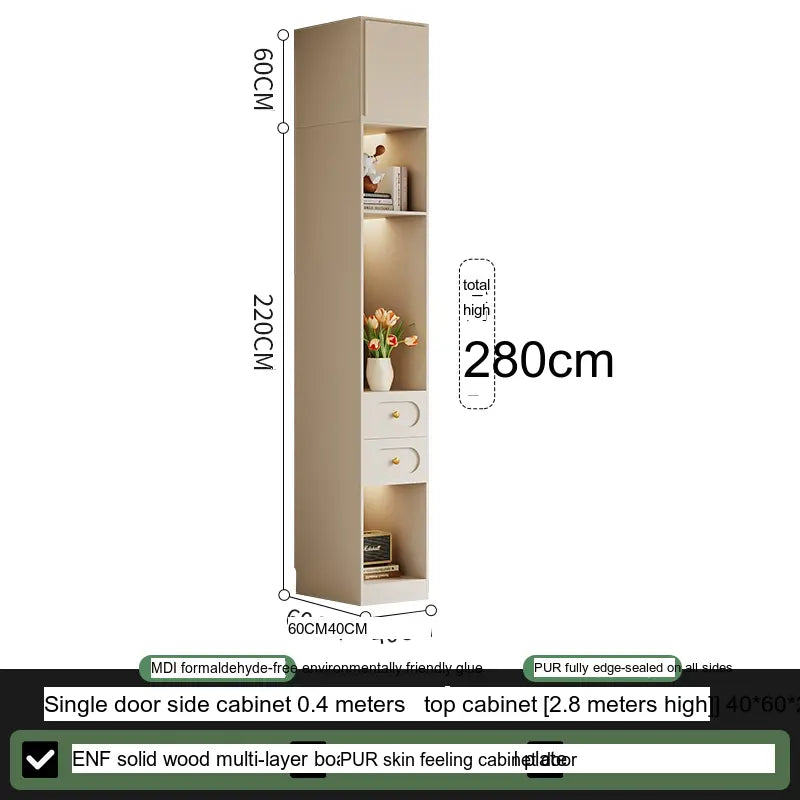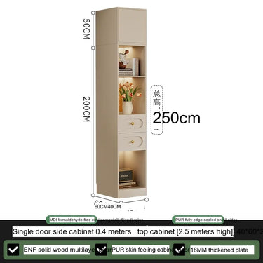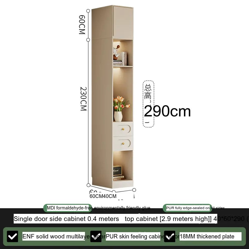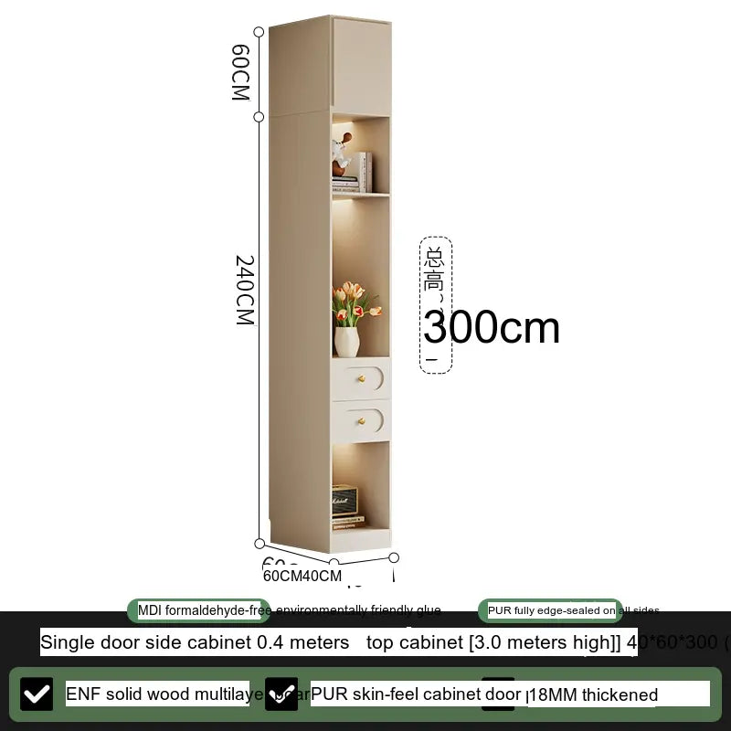 Available in a range of dimensions, the MEIHOUSE Jasper wardrobe caters to diverse storage needs. You can choose from sizes starting at 0.4 meters all the way up to 2.4 meters in width, each with a matching roof cabinet boasting a height of 2.5 meters. This ample space provides you with enough room to organize your clothes, accessories, and personal belongings with ease. The wardrobe's full cabinet design, constructed with an 18MM thickness, ensures that it can withstand daily wear and tear, making it a truly reliable furniture choice for your home.
