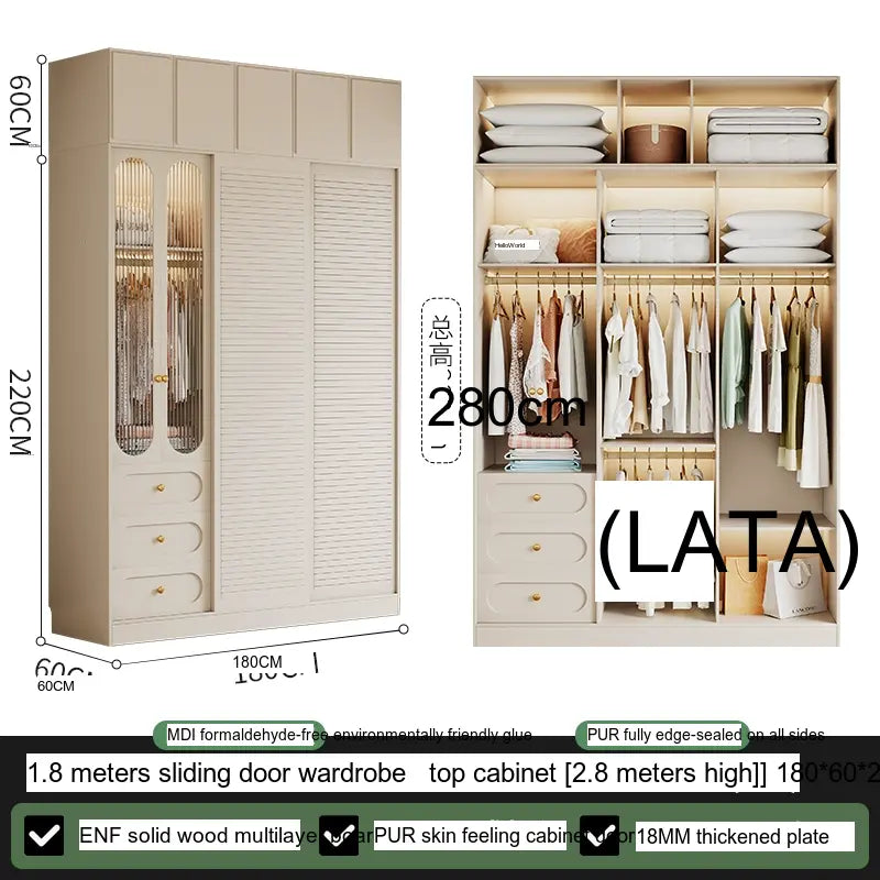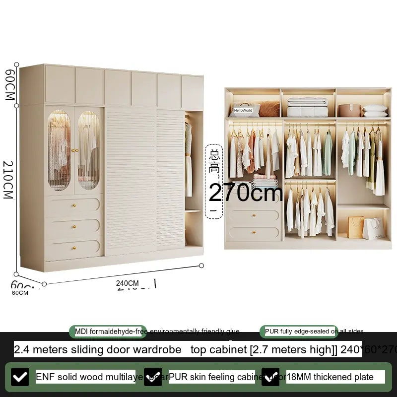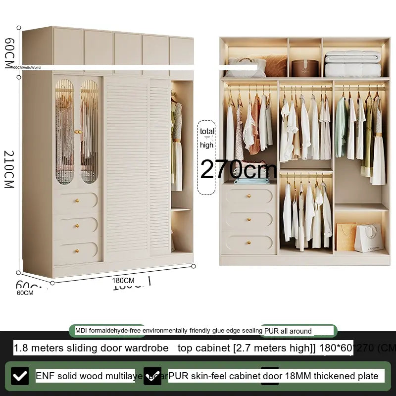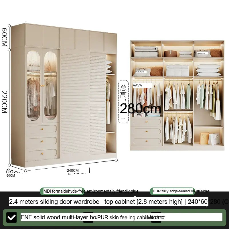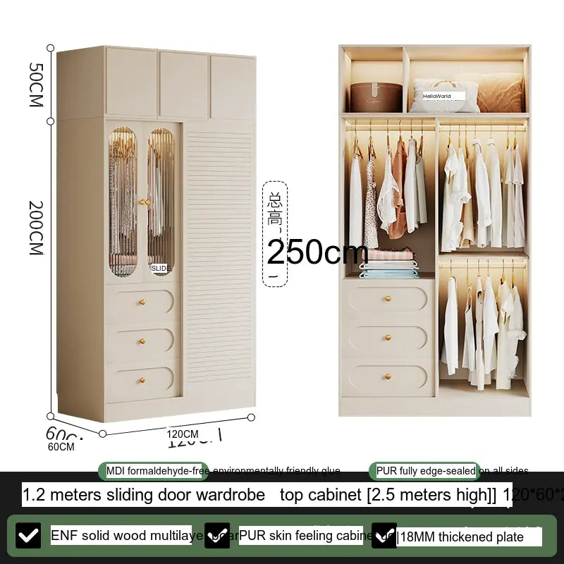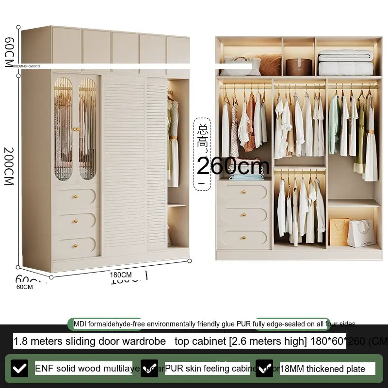 Available in a range of dimensions, the MEIHOUSE Jasper wardrobe caters to diverse storage needs. You can choose from sizes starting at 0.4 meters all the way up to 2.4 meters in width, each with a matching roof cabinet boasting a height of 2.5 meters. This ample space provides you with enough room to organize your clothes, accessories, and personal belongings with ease. The wardrobe's full cabinet design, constructed with an 18MM thickness, ensures that it can withstand daily wear and tear, making it a truly reliable furniture choice for your home.