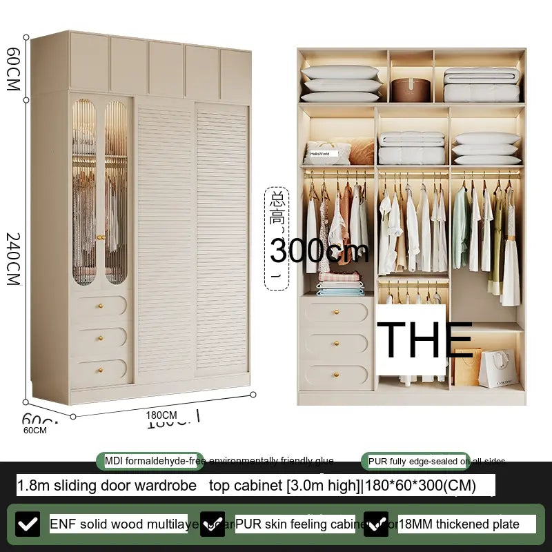 Featuring a combination of both open and closed storage compartments, the MEIHOUSE Jasper wardrobe allows for optimal organization of your belongings. The spacious side cabinet is perfect for hanging clothes and larger items, while the roof cabinet provides ideal storage for seasonal clothing or items you'd prefer to keep out of sight. The elegant multi-layer design not only maximizes functionality but also enhances the aesthetic appeal of the wardrobe.