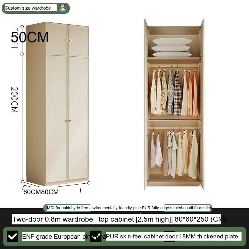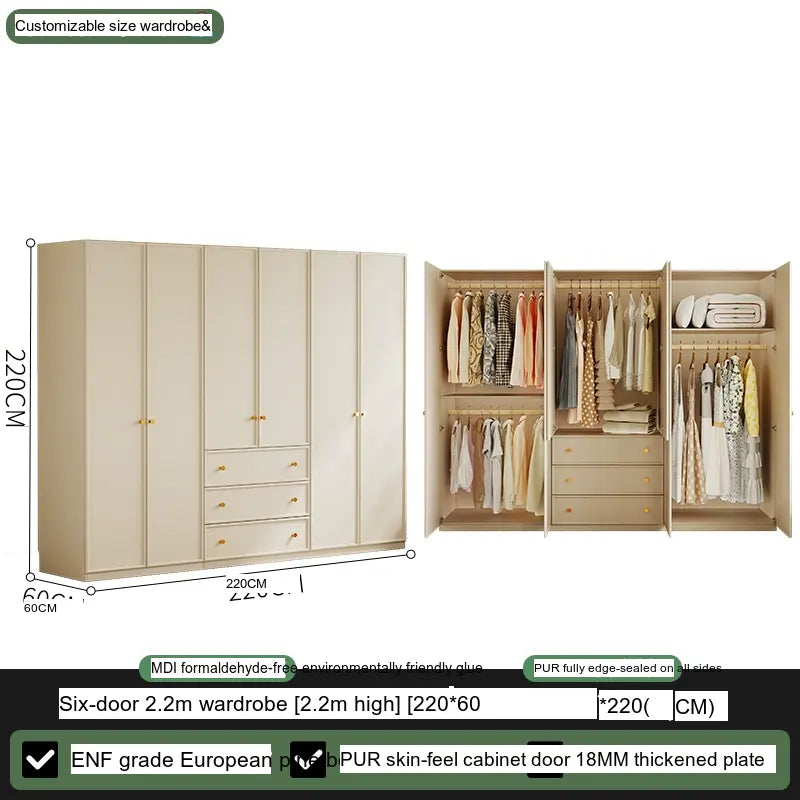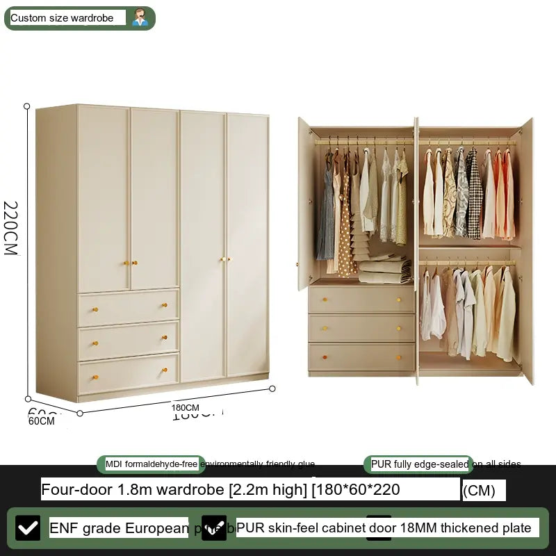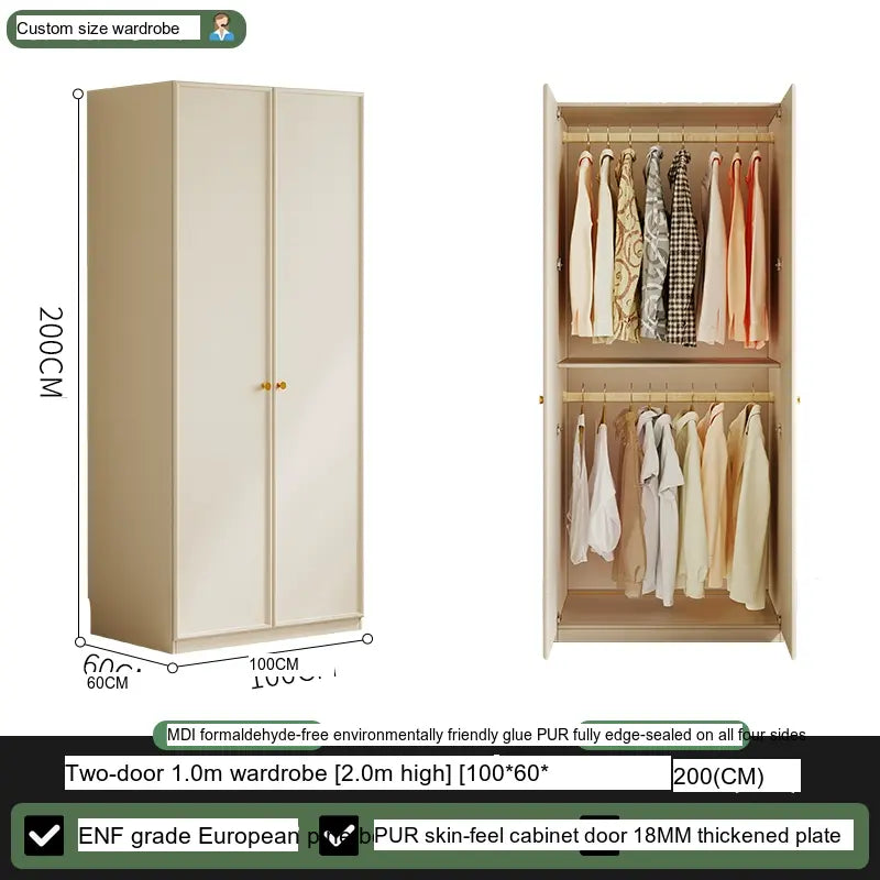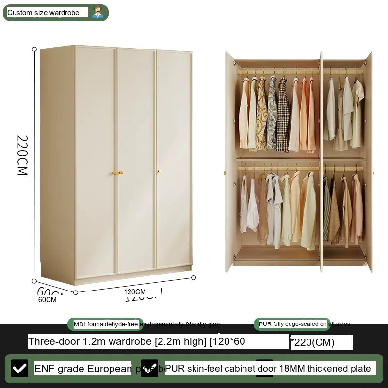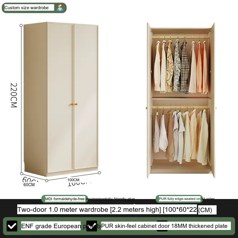 The opening and closing mechanism of the wardrobe features a user-friendly open-door style. This makes accessing your clothing and other belongings as easy and smooth as possible—no more awkward tugging or worrying about handles. The doors preserve the sleekness of the design while ensuring practical usability, making it easy to keep your living spaces organized.