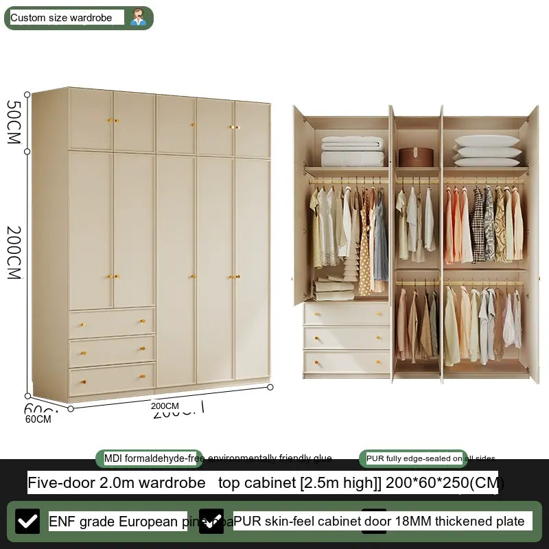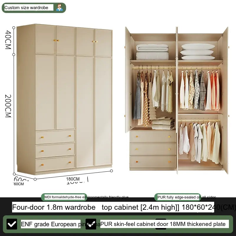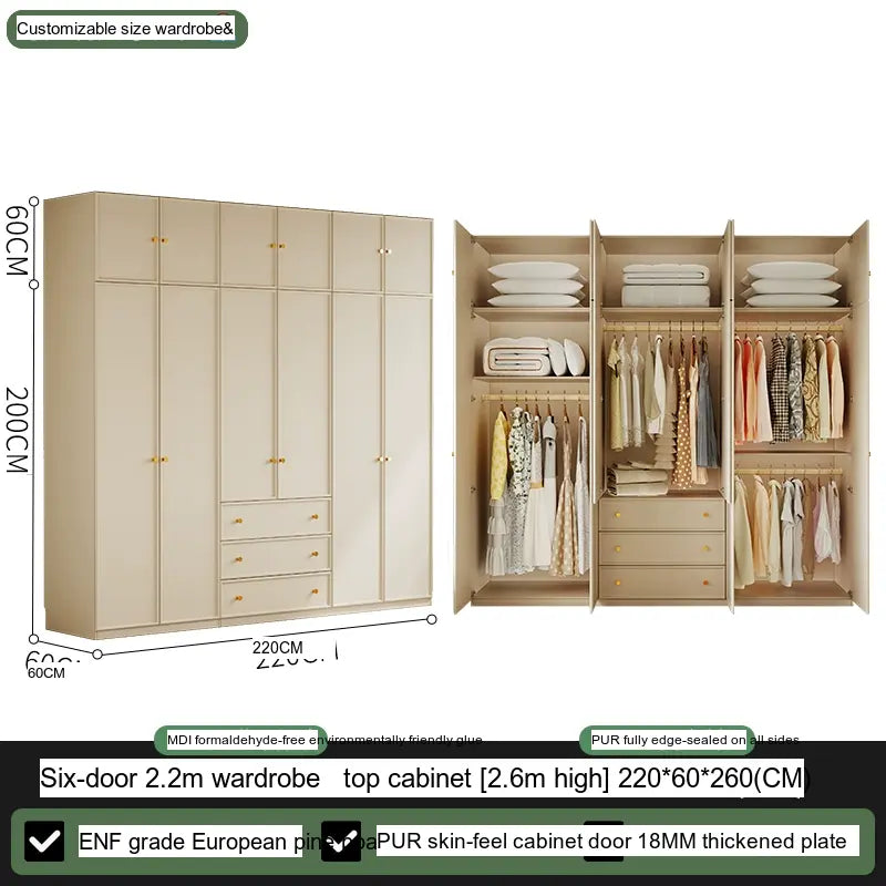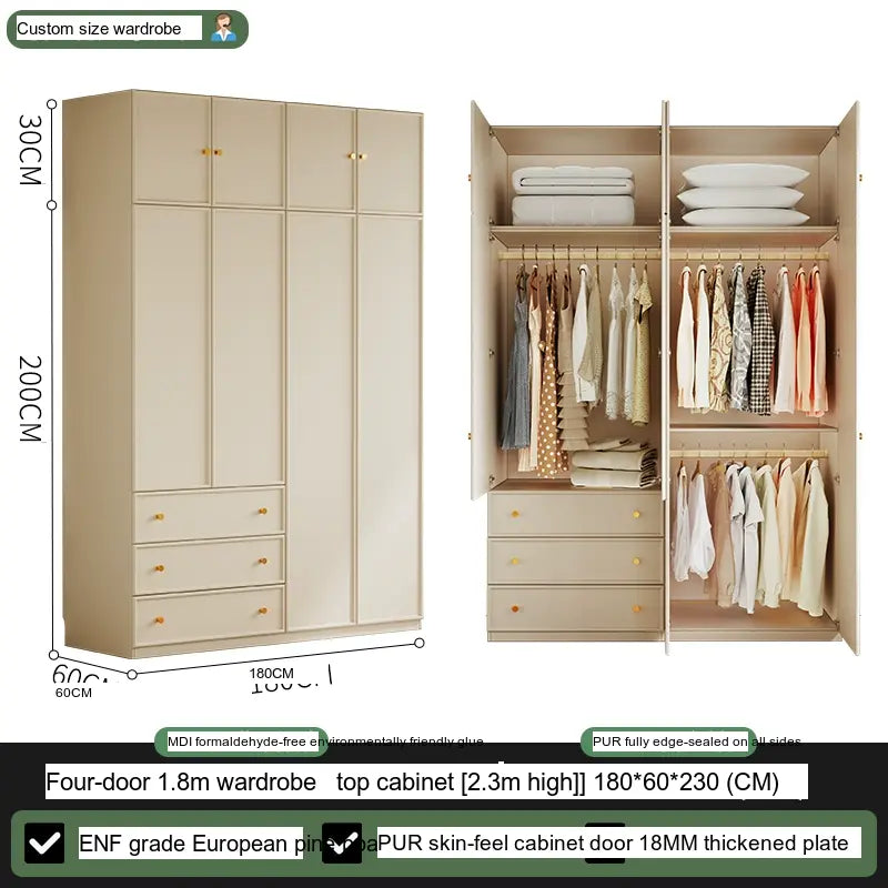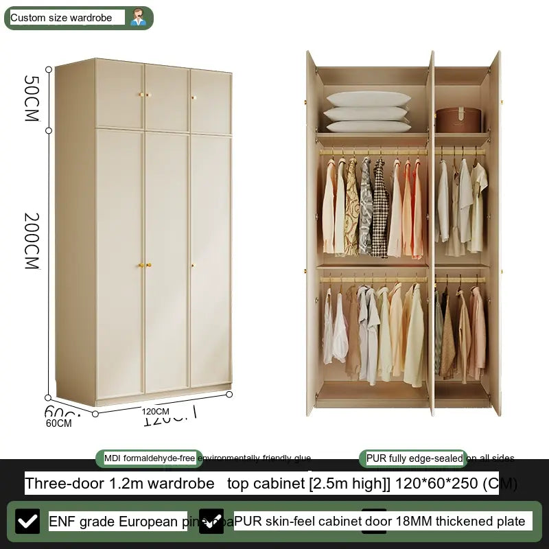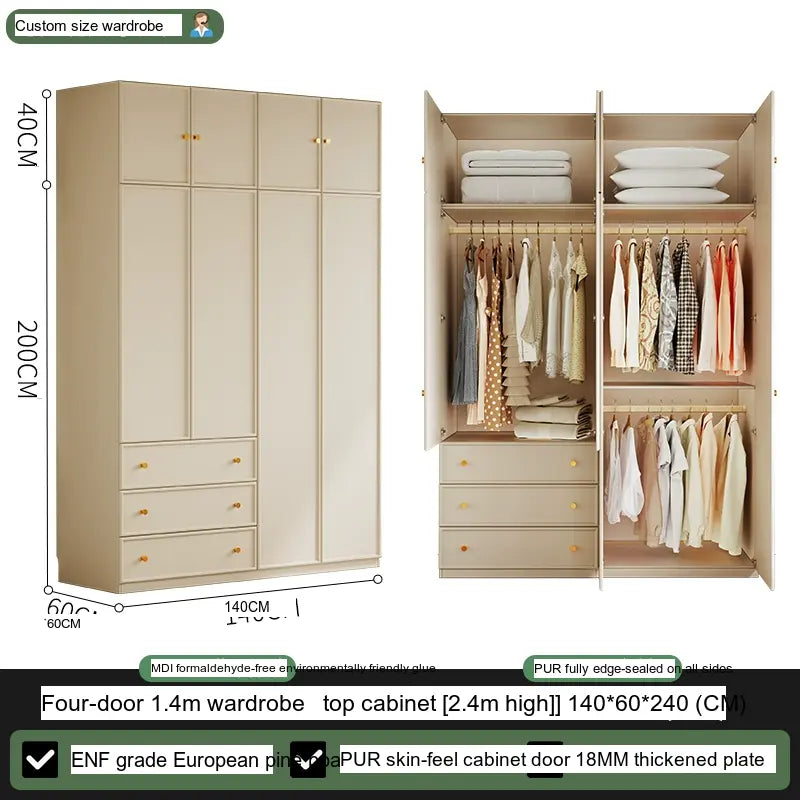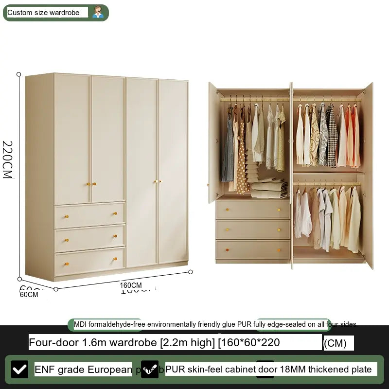 The opening and closing mechanism of the wardrobe features a user-friendly open-door style. This makes accessing your clothing and other belongings as easy and smooth as possible—no more awkward tugging or worrying about handles. The doors preserve the sleekness of the design while ensuring practical usability, making it easy to keep your living spaces organized.