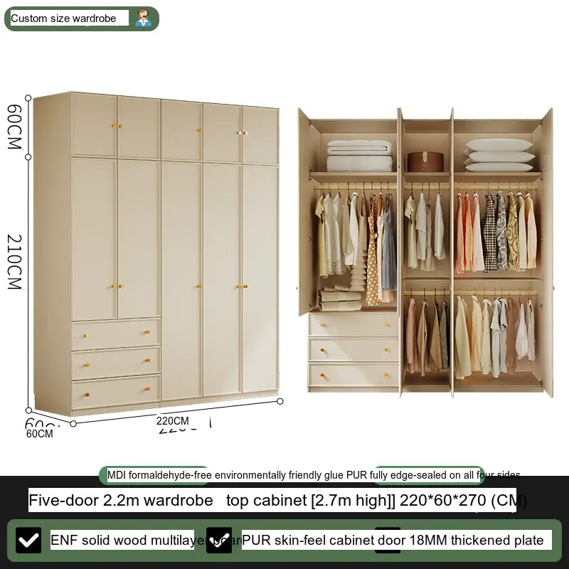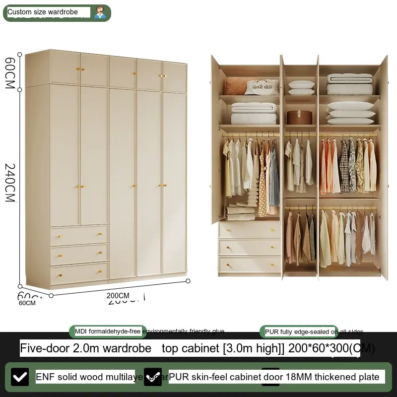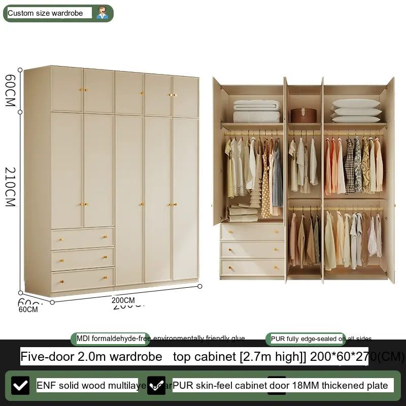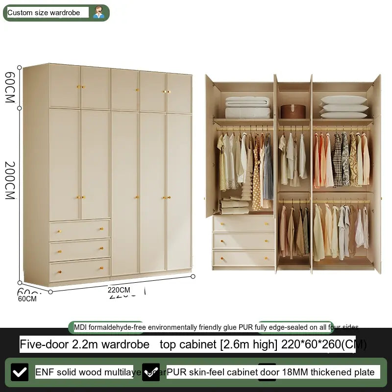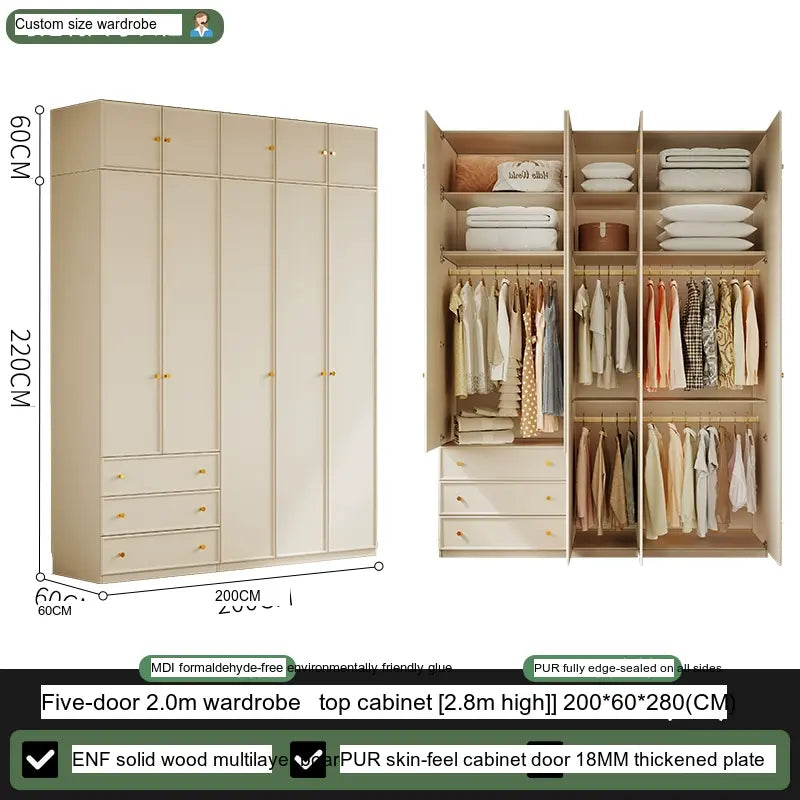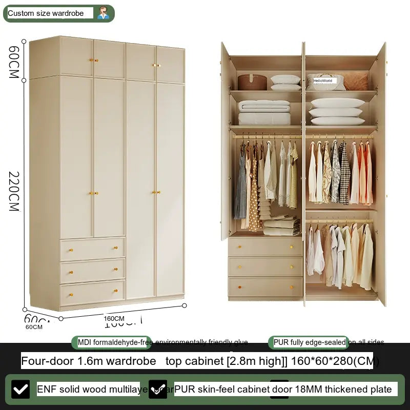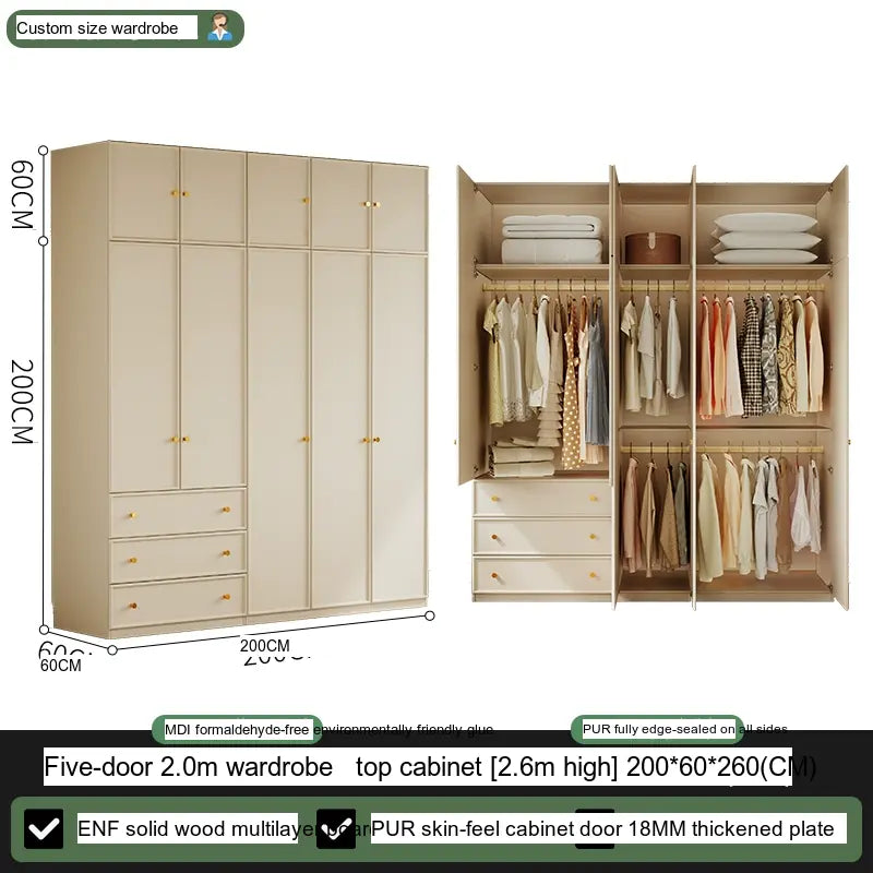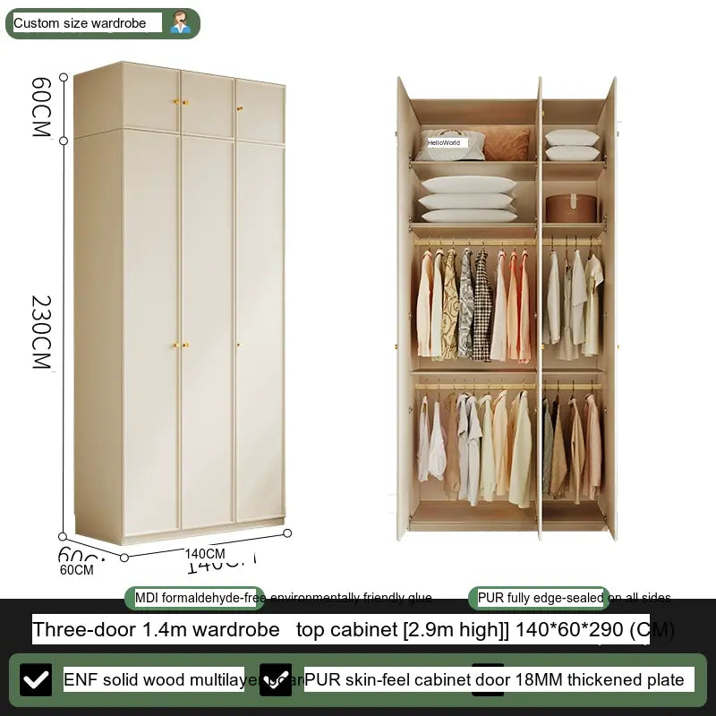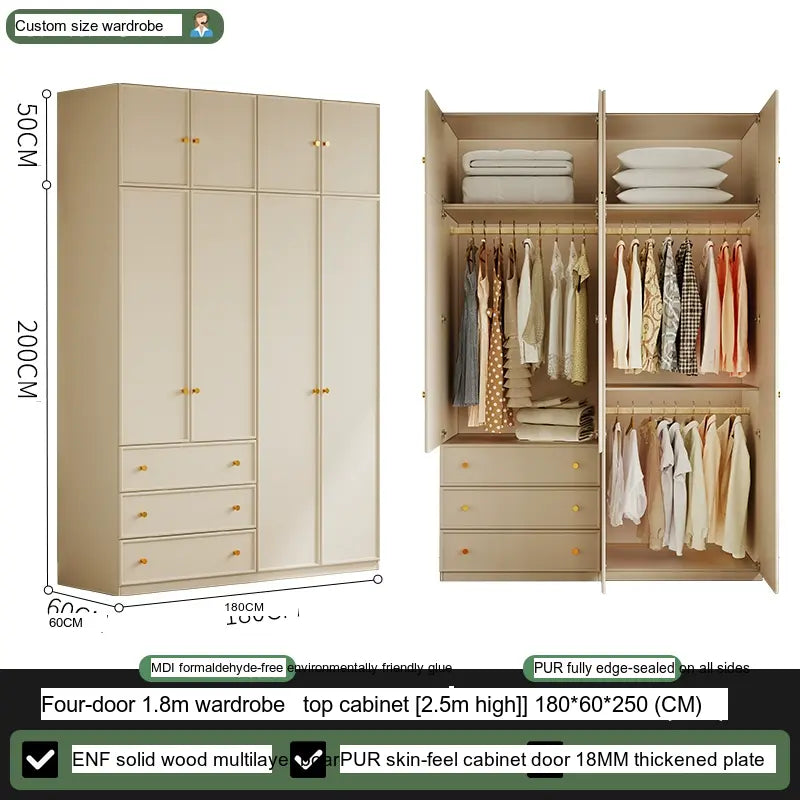 Available in multiple configurations—1.2 meters three-door option, 1.6 meters four-door option, 2 meters five-door variety, and the 2.4 meters six-door option—this wardrobe is designed to accommodate your unique storage requirements. The addition of a ceiling cabinet offers even more vertical storage space, ideal for organizing seasonal clothing, bedding, and other bulk items, keeping your living area clutter-free.