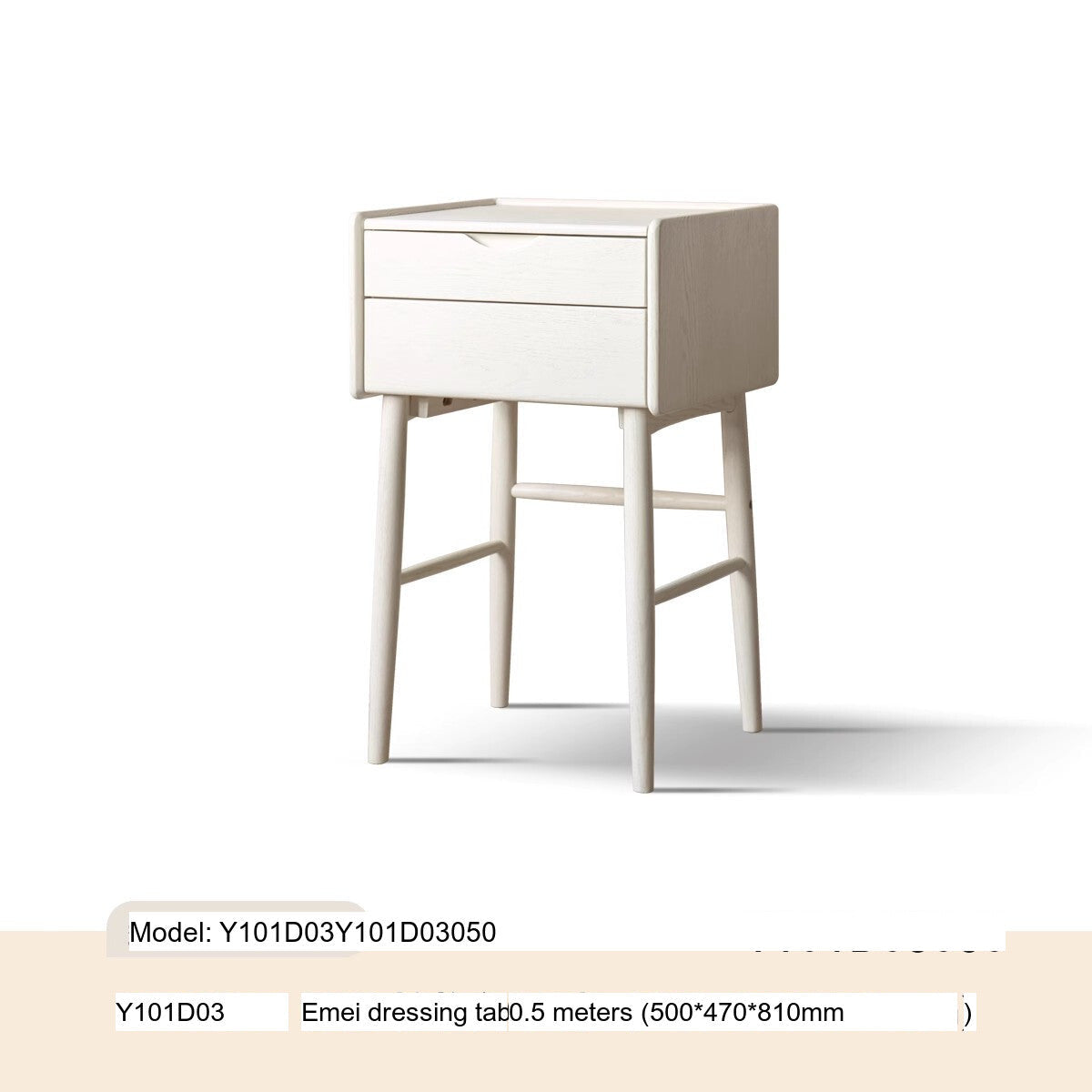 Despite its compact size, measuring a mere 50cm in width, the design maximizes utility with an innovative internal structure. The flip makeup mirror incorporates an LED light strip, providing bright illumination that enhances makeup application while occupying no extra floor space. The desk features double storage compartments, allowing ample room for high and low cosmetics, and two dedicated areas for neatly storing jewelry and frequently used products.