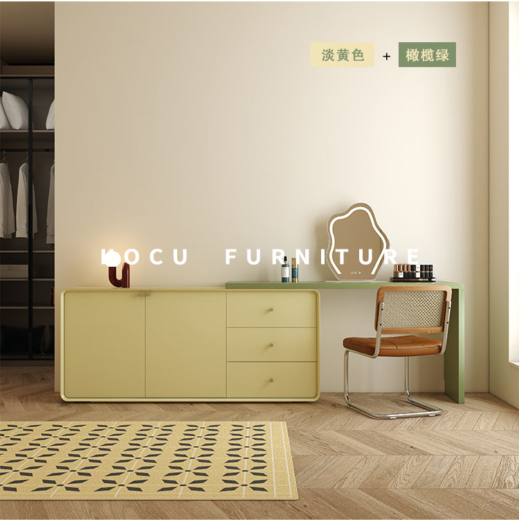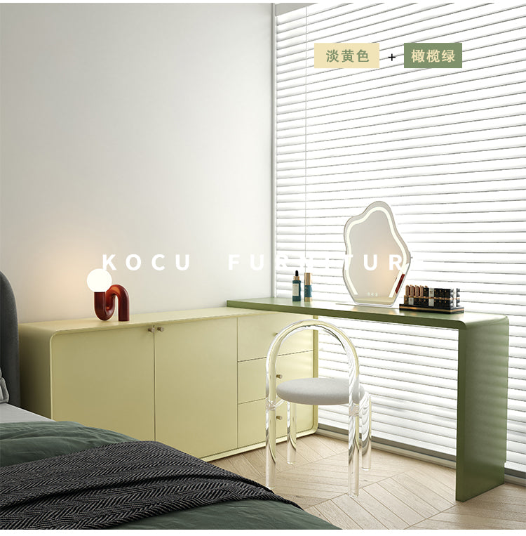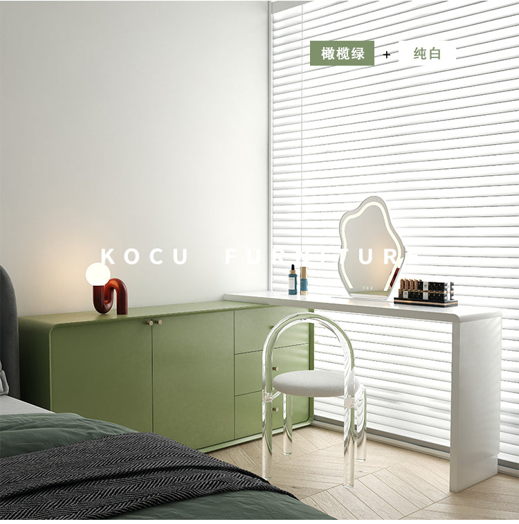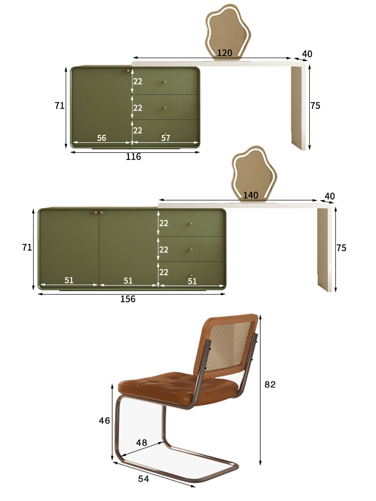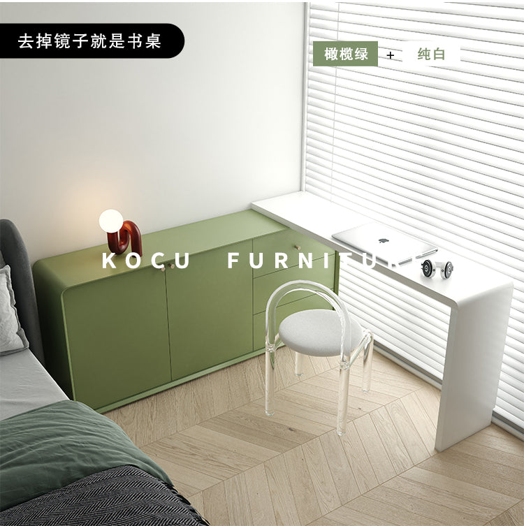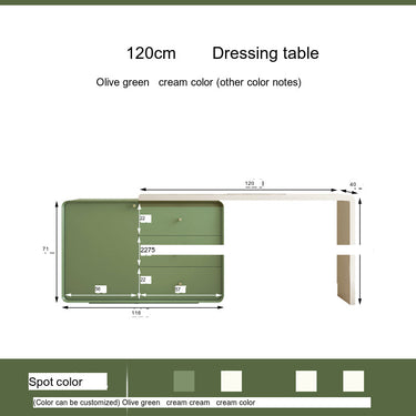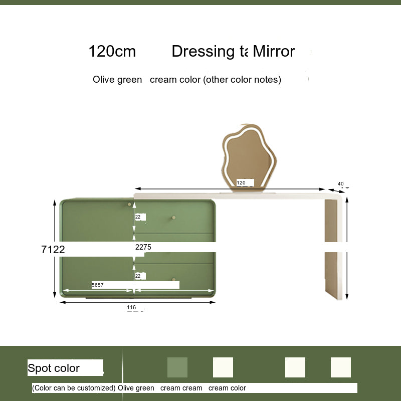 This stunning dressing table comes in multiple configurations, allowing you to choose the option that best suits your needs. Whether you prefer a 120cm or 160cm table, with or without a mirror, there is a perfect setup for everyone. Select from elegant color options such as cream or olive green, or opt for customized colors to match your unique style. The distinguishing features include a dual-door design with spacious drawers for organized storage and easy access to your beauty essentials.