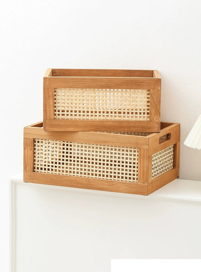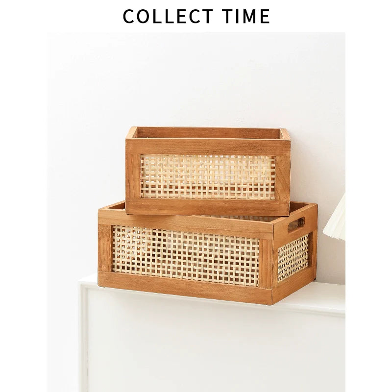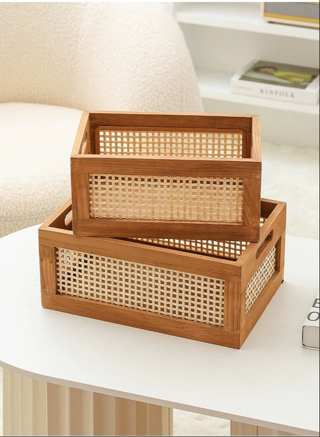 - Vintage Bamboo Storage Basket - Small + Large Set