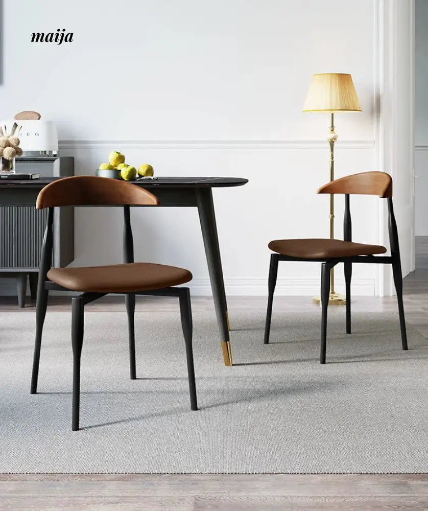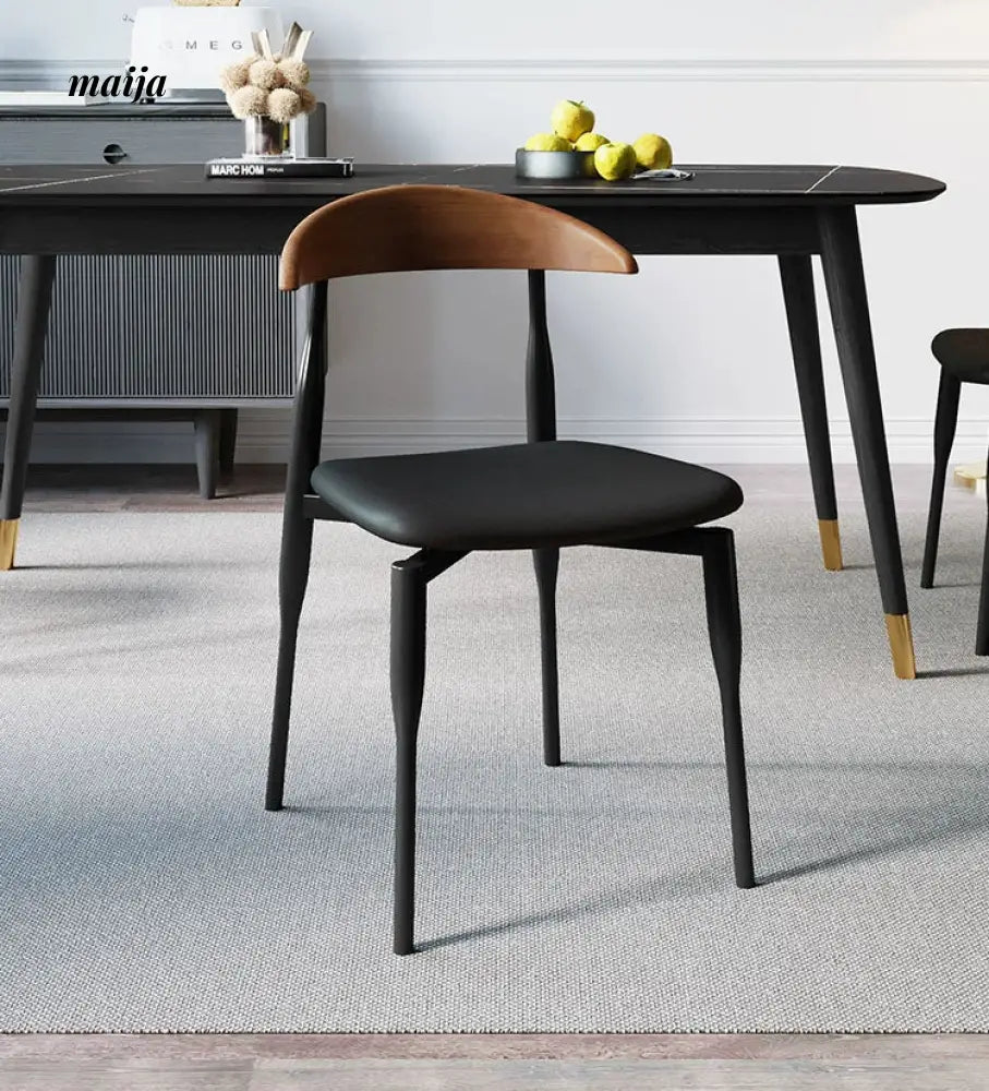 This Nordic-style dining chair combines elegance and comfort, making it a perfect addition to any dining area. The high-density sponge filling and high-quality leather ensure a comfortable seating experience. The chair's design, with its smooth edges and arc shape, adds a touch of modernity to your home. The compact and lightweight structure allows for flexible placement without taking up much space. Its solid wood backrest is designed to fit the human body's curves, providing excellent support for the waist and back.