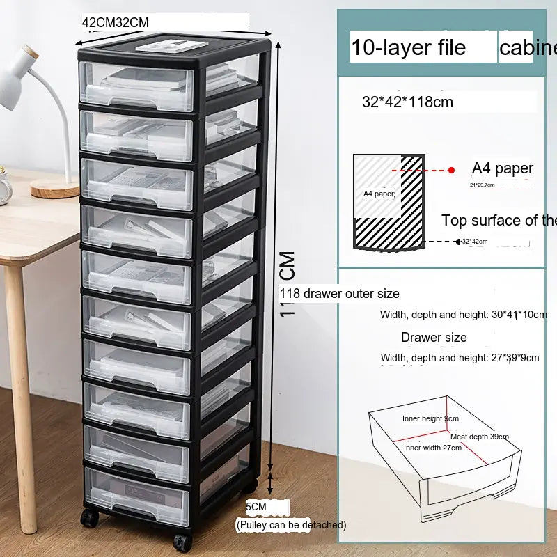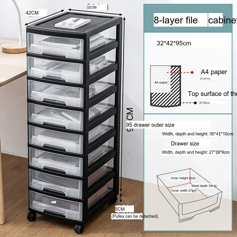 The transparent front panels of the drawers promote visibility, allowing you to quickly identify contents without opening each compartment. Whether you're in an office setting tackling paperwork or in a creative space organizing art supplies, the Alistair cabinet's efficiency will revolutionize your approach to tidiness and accessibility.