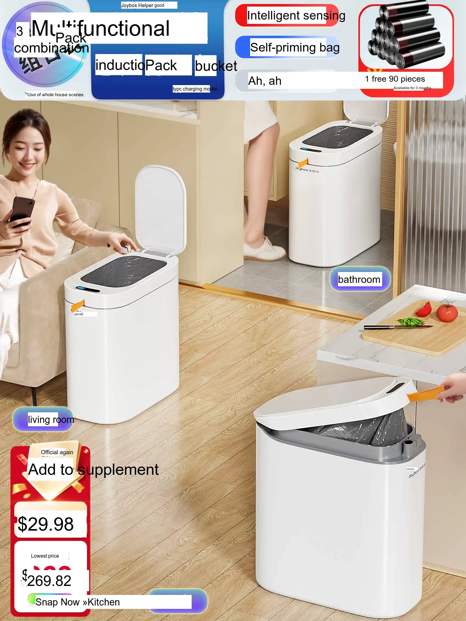 The JIABANGSHOU Daiko is designed for family use, making it perfect for various scenarios including kitchens, bathrooms, and even home offices. It is suitable for all members of the household, and its touchless operation makes it especially user-friendly for children and the elderly. Everyone can contribute to keeping the home clean without the worry of direct contact with waste.
