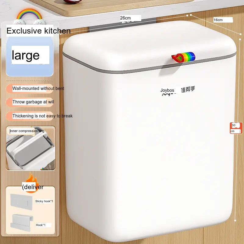 Say goodbye to traditional, bulky trash can designs. The JIABANGSHOU Maribelle Trash Can offers a unique wall-mounted feature that allows you to save floor space while keeping your waste discreetly tucked away. The trash can is accompanied by durable sticky hooks, providing two installation methods to fit different surface types. Whether you choose to mount it inside a cabinet, on a wall, or hang it on a smooth surface, installation is a breeze.
