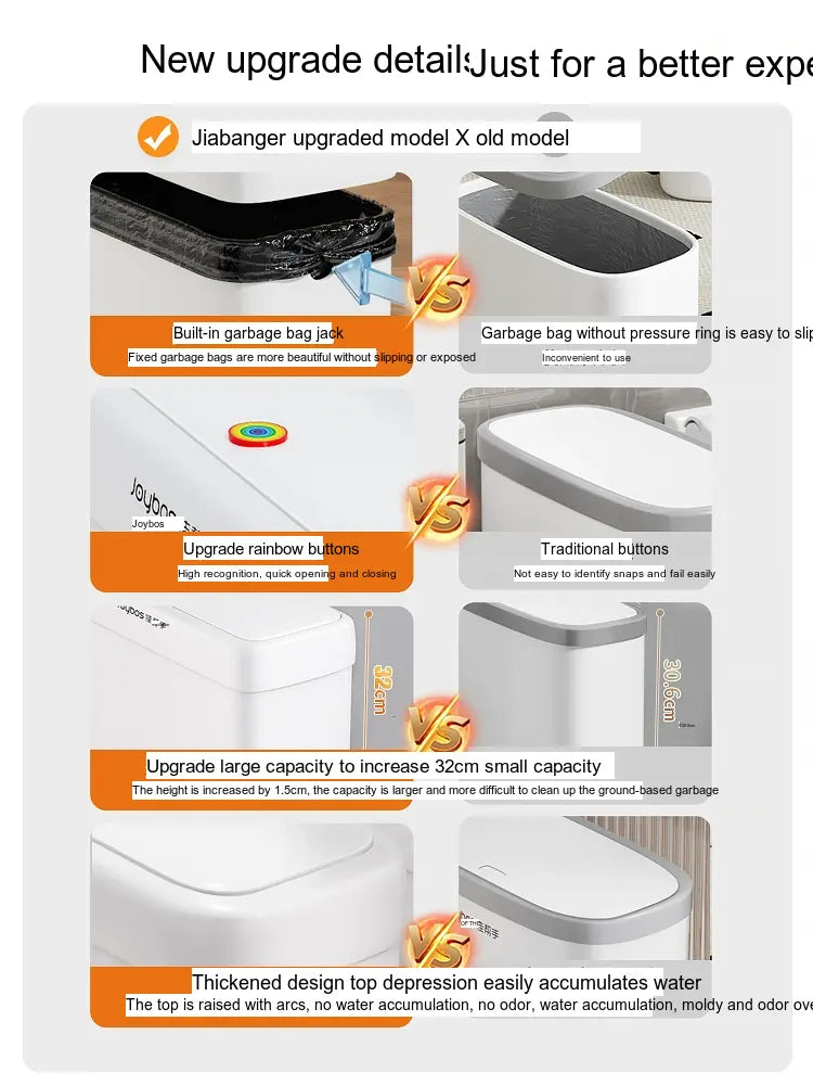 Elevate your home organization with the JIABANGSHOU Marigold Elegant Large Trash Can. With its chic design, durable materials, and efficient functionality, it’s the ideal solution for anyone looking to maintain a clean and pleasant living environment. Order now and experience the blend of beauty and efficiency that this trash can offers!