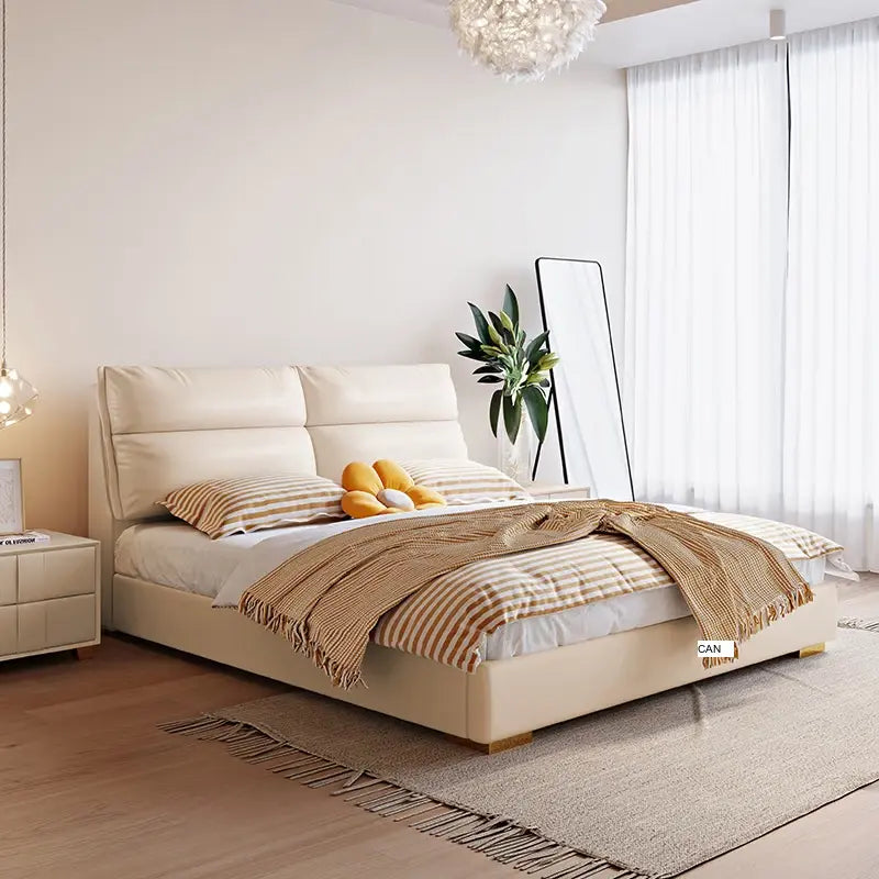 This bed frame features a stunning blend of modern simplicity and classic opulence, making it a versatile addition to various interior design styles. The smooth lines and square geometric shape lend a contemporary feel, while the addition of genuine leather accents elevates the overall aesthetic. With a choice of sizes available—1500mm x 1900mm and 1500mm x 2000mm—it suits both cozy singles and more spacious bedrooms alike.