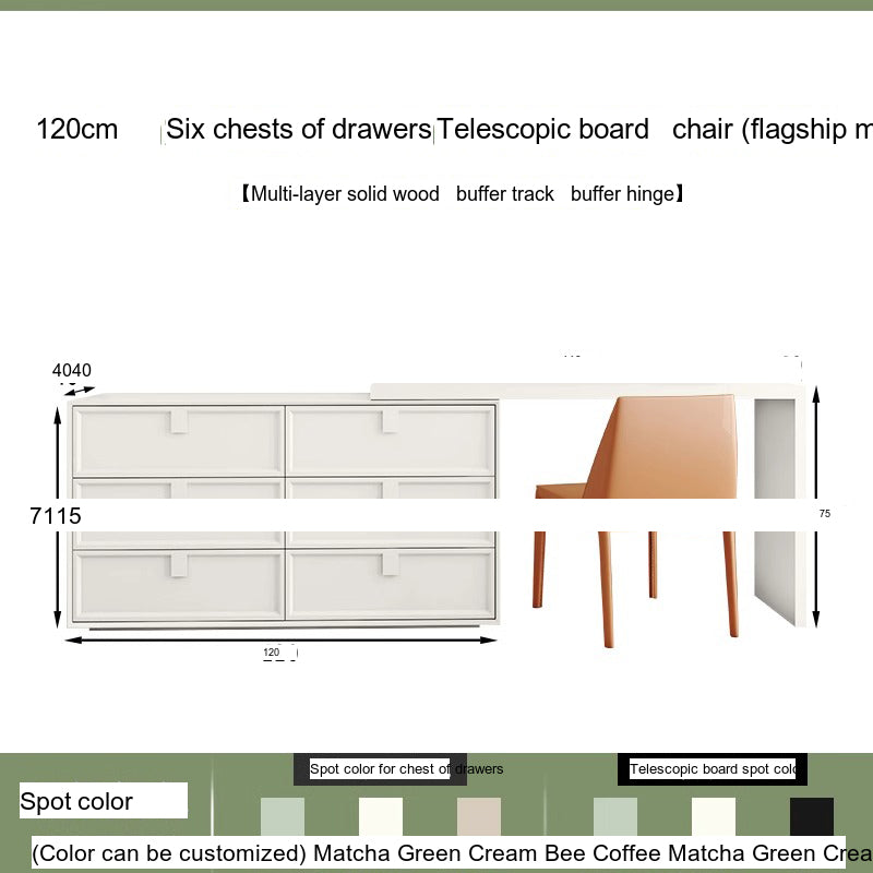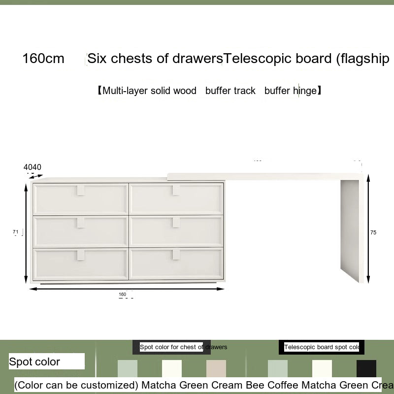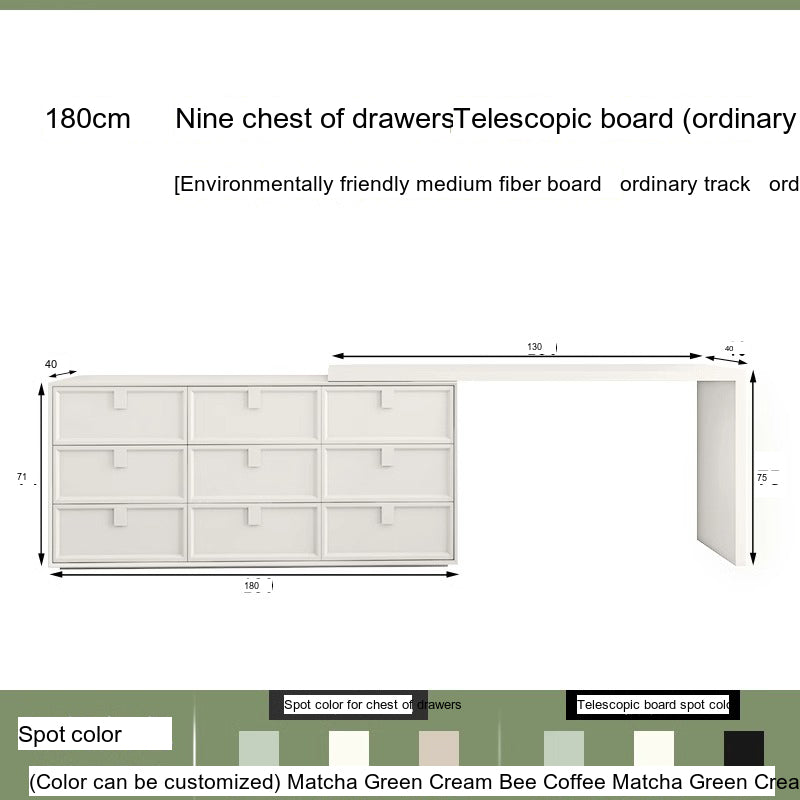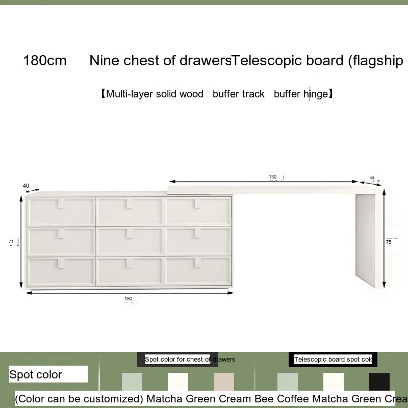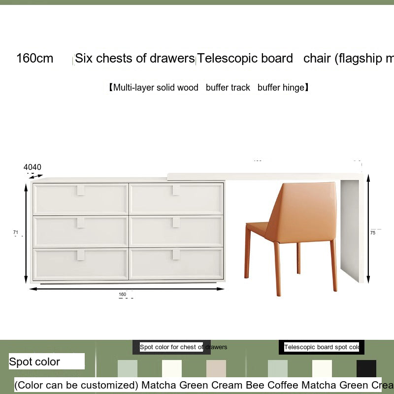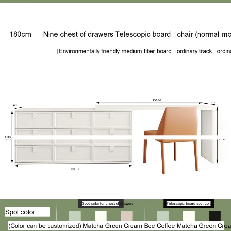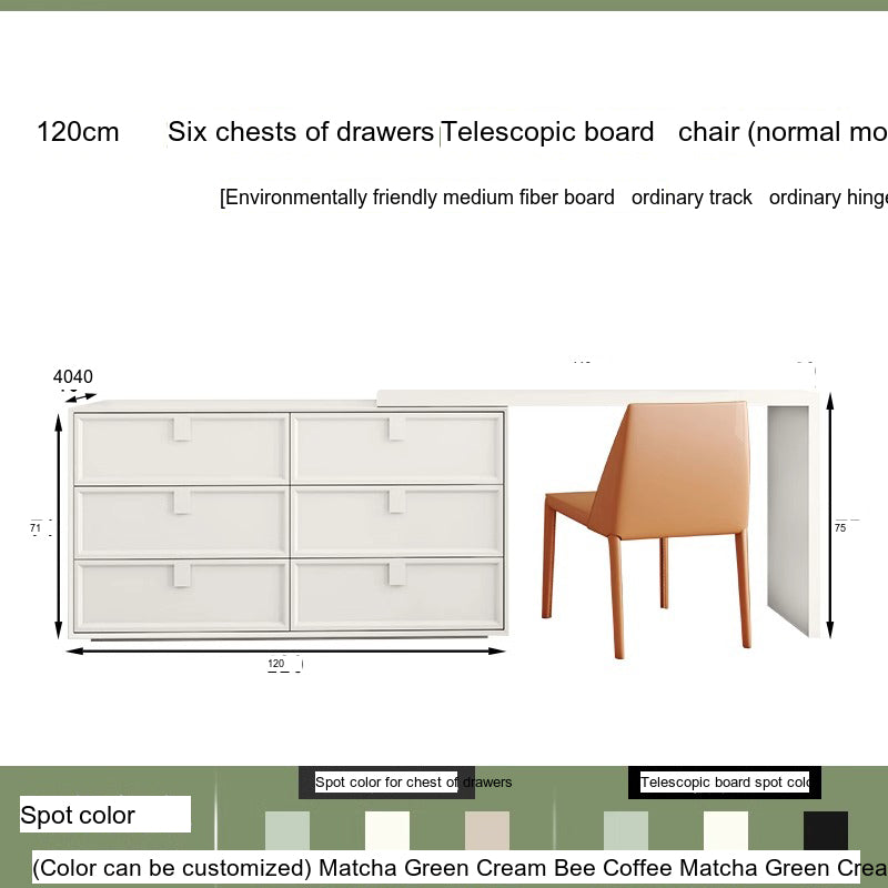 This versatile makeup table set is available in multiple sizes, ranging from 80cm, 120cm, up to 180cm, accommodating different space requirements and personal preferences. Each table features a telescopic board that can be adjusted to your desired comfort height.