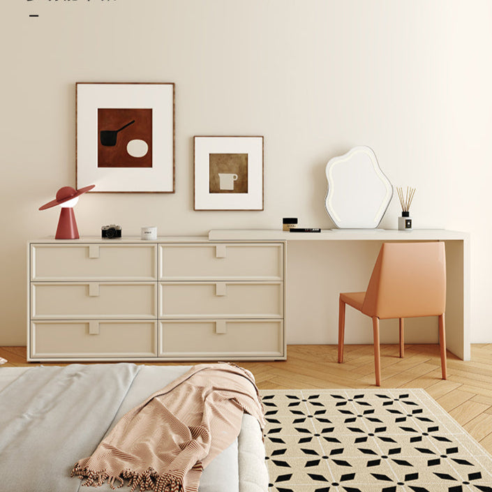 The modern and simple style of this makeup table is accentuated by artistic patterns and a clean silhouette, making it a versatile addition to your home decor. Whether you're getting ready for the day or winding down in the evening, this table set provides an inviting and organized environment to help you feel your best.