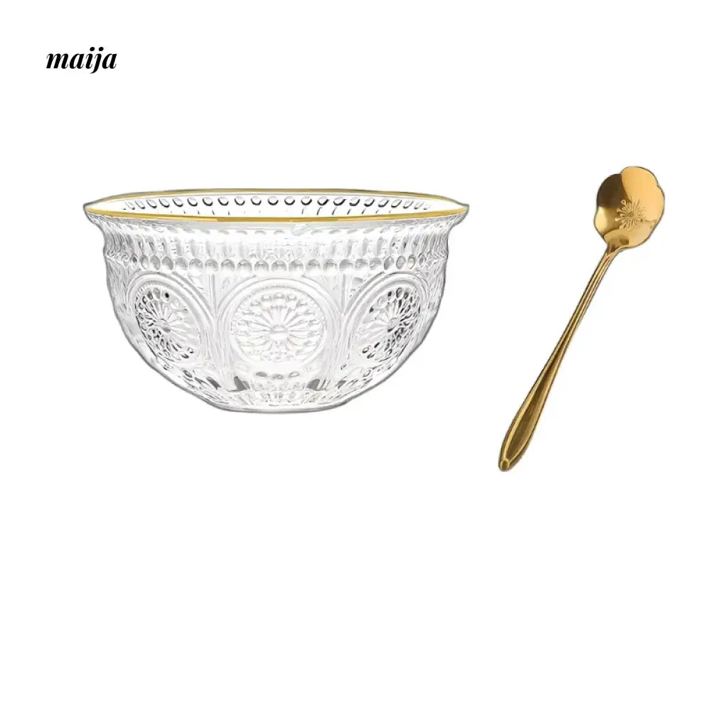 - Gold-rimmed embossed dessert bowl (with spoon)