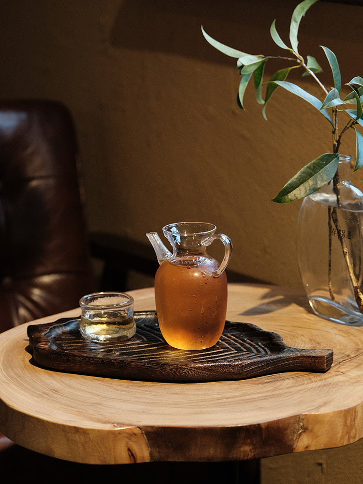 Every tray is carefully handcrafted, showcasing delicate wood grains and a distinctive finish due to the burning process, which enhances its natural beauty. The artistry extends to its design, featuring an elegant leaf shape that marries simplicity with modern aesthetics. Whether used as a tea tray, fruit platter, or snack holder, this multi-functional piece is versatile enough for various occasions.