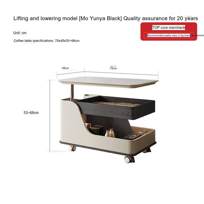 A standout feature of the QUANMU Eleutheria table is its innovative lift-top design. With a simple press, you can raise the surface to create a convenient workspace for your laptop or a dining area for enjoying snacks during movie nights. This multifunctionality is ideal for those with busy lifestyles, allowing the coffee table to seamlessly adapt to varying needs, from casual gatherings to working from home.